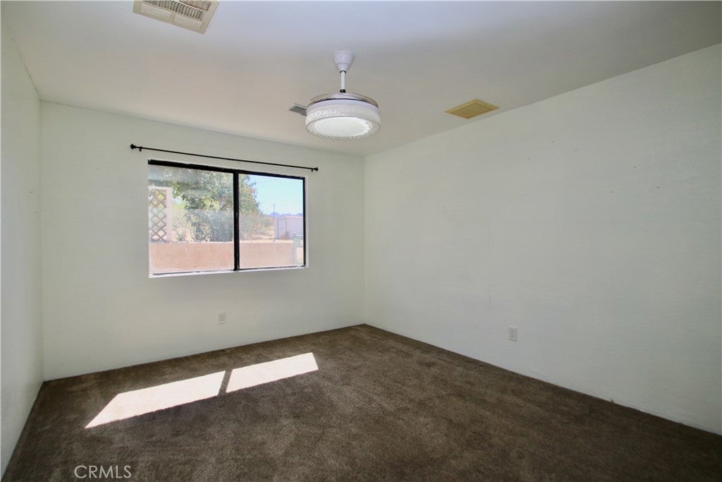 Spacious and inviting 3-bedroom, 2-bath home offering comfort, convenience, and desert charm! Featuring both a living room and family room with a cozy fireplace, this home provides plenty of space for relaxing or entertaining. The updated kitchen includes a stove, dishwasher, microwave, and refrigerator, making it move-in ready. Enjoy year-round comfort with natural gas central heat, air conditioning, and an evaporative cooler. Step outside to the covered patio overlooking the fenced backyard—perfect for pets, gatherings, or simply enjoying the desert views. A storage shed adds extra space for tools or outdoor gear. Located just a short drive from Joshua Tree National Park, shopping, restaurants, and schools, this home also offers an easy commute to the 29 Palms Marine Base. Don’t miss your chance to own this well-maintained desert retreat—perfect as a family home, investment, or weekend getaway!