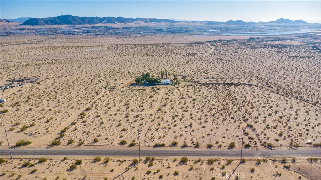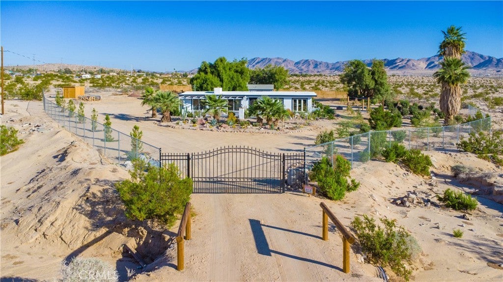 Welcome to An Oasis in the Desert. On this expansive 26.6-acre lot you will find privacy, peace and perfection. The main structure is a Mid-Century brick home with 3 Bedrooms and 2 Baths, all beautifully renovated by a local General Contractor. This Complete Renovation took the original structure down to the bare bricks. From this basis, a brand new home was constructed keeping the original, solid brick frame. A new interior was constructed adding all new electrical, plumbing, fixtures, and appliances. This double-walled and insulated structure provides the type of quiet we all desire as well as protection from the outside elements. When being outdoors is craved, this property boasts a brand-new inground pool, complete with a floating pathway around the pool, the spa, and between the house and guest house. This outdoor area is surrounded by a wide variety of original and new indigenous plants and rocks to create a stunning tropical environment. All plants are on a sprinkler system to make their enjoyment stress-free. The guest quarters is found at the far end of the pool area and has an outdoor shower and both an exterior access bathroom and an interior bath. The above-ground spa is also brand new and has the perfect adjustments for the jets and temperatures to help you unwind. The attached 20-acre parcel is perfect for exploring, hiking or developing into anything a new owner may desire. The water supply is a well that was recently upgraded. Enjoy bird watching or enjoying the night sky beyond what you have ever experienced. This property has a gorgeous Mountain Views to both the North and South, where the world-famous Joshua Tree National Park is located. The drive to the East Entrance of the park takes only 19 minutes.