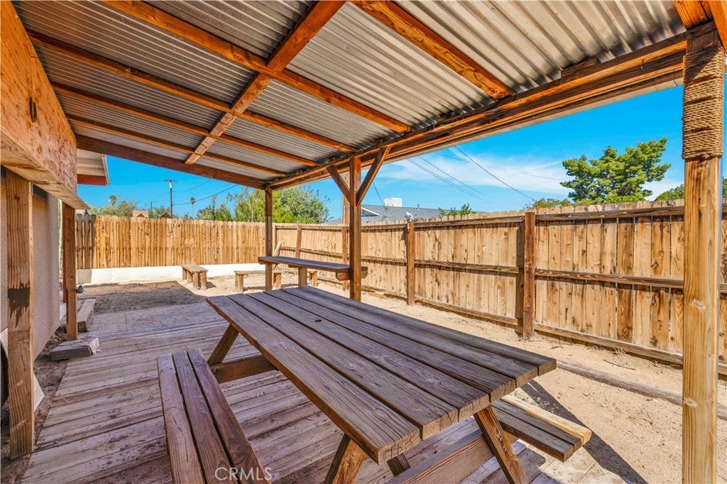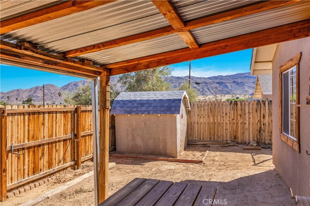 BACK ON THE MARKET!!! Call today, this one won't last! This home is in the heart of 29 Palms with just a short drive to anything you need, from grocery shopping, restaurants, the USMC Military Base, and the all-famous Joshua Tree National Park. The bright, open living room has a wood-burning stove to keep you cozy in the winter. The kitchen comes equipped with a Stove and a Dishwasher, along with ample cabinet space. The private backyard is perfect for entertaining, featuring a covered concrete patio with an extended cover and a picnic table to accommodate all your guests. All bedrooms are decent size with great closets and new ceiling fans. The two-car attached garage is sure to not disappoint with a built-in workbench. Please note this is an As-Is Sale unless otherwise negotiated.