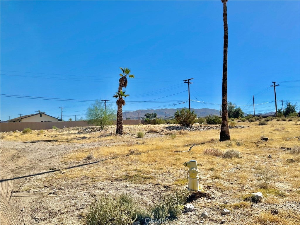 Discover the perfect opportunity to build your dream home on this BEAUTIFUL PRIME CORNER LOT!! Located just minutes from the entrance to Joshua Tree National Park, Tortoise Rock Casino, and within walking distance to local Elementary school. Surrounded by breathtaking desert and mountain views, this property offers the ideal blend of peace, privacy, and convenience. A water meter is already installed, and an electrical pole is located at the northeast corner of the property, making future development even more convenient. Whether you're planning a full time residence, a vacation retreat, or an investment build, this location checks all the boxes. Close to local schools, shops, dining, and outdoor adventure, this lot offers unbeatable potential in once of the area's most desirable settings. Don't miss your chance to create something truly special on this gorgeous piece of land!! Structure used to be on property.