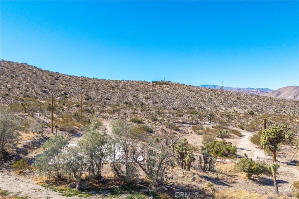 Take a trip to this wondrous hillside location just below the home the Rat Pack used to frequent as a retreat in Yucca Valley. Welcome to 7995 Jericho Road! This is two good sized parcels being sold together that have gorgeous panoramic views and a lot of potential. TOTALING just under two and three quarter acres combined, the main plot is 1.71 acres and the attached parcel to the East is a 1 acre parcel. And with power poles at the property line and a defunct slab where a 1300 square foot home once stood this would make for a great rural getaway. There is no water at the property. The property address is registered with the Town of Yucca Valley and is currently zoned as residential as a result of the home that was there at one time. The seller's are also selling a package of 5 parcels (80 acres) in Morongo Valley right on the Hwy. as well as other parcels in Morongo Valley. Could be a great package deal for development. Located close to all the high desert has to offer and a great jump off point or landing spot for the areas attractions, tourism sites like the Joshua Tree National Park which is only 10 miles away to the main entrance.