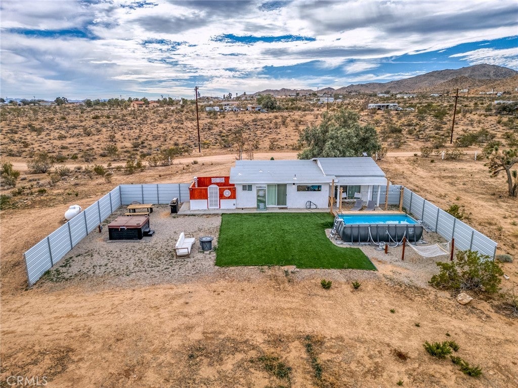 Perfect for both owner-occupants seeking a serene primary or secondary residence and investors looking for a proven short-term rental performer, this thoughtfully designed property delivers the ideal balance of luxury, privacy, and versatility. Set on a spacious lot surrounded by iconic high-desert landscape, the home immediately draws you in with its inviting outdoor amenities. A sparkling in-ground pool serves as the centerpiece of the backyard oasis, offering the perfect escape during warm desert days. Adjacent to the pool, a beautifully maintained hot tub provides a soothing place to unwind after a day of exploring nearby Joshua Tree National Park. For those who appreciate unique outdoor living experiences, the property also features an outdoor shower and a charming open-air soaking tub, ideal for stargazing or enjoying tranquil desert mornings. As evening settles in, the dedicated fire pit area creates an ambiance that truly sets this home apart. With panoramic desert views and some of the clearest night skies in Southern California, this space becomes a natural gathering spot for relaxation, conversation, and unforgettable memories. These sought-after amenities not only elevate the lifestyle of an owner-occupant but also significantly enhance the home’s appeal as a high-demand rental destination. Inside, the home offers a stylish and inviting interior designed with comfort and functionality in mind. Spacious bedrooms, each featuring a king size bed to ensure restful nights for family or guests, while the additional pull-out couch expands accommodation options. The open-concept living, dining, and kitchen areas create a seamless flow perfect for entertaining, remote work, or enjoying quiet evenings in. The fully equipped kitchen provides the space and convenience needed for everyday living or hosting extended-stay guests.