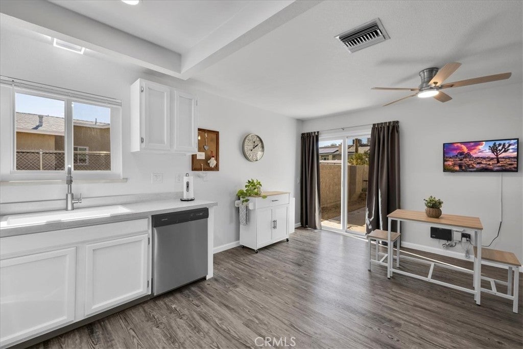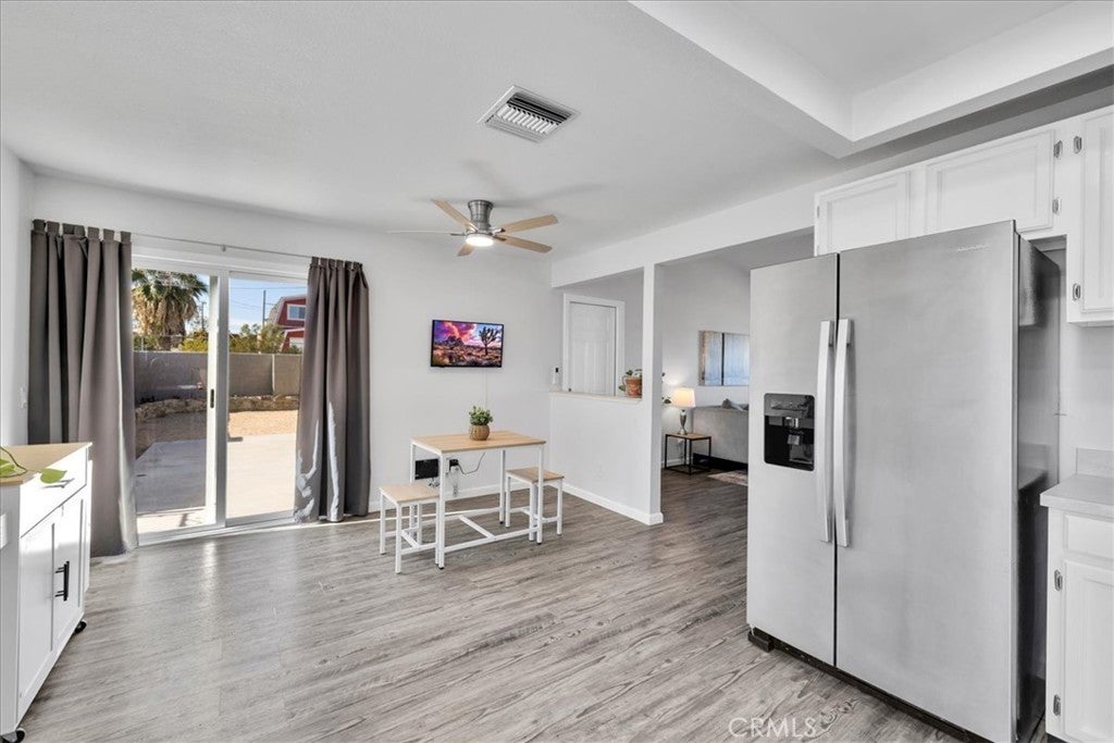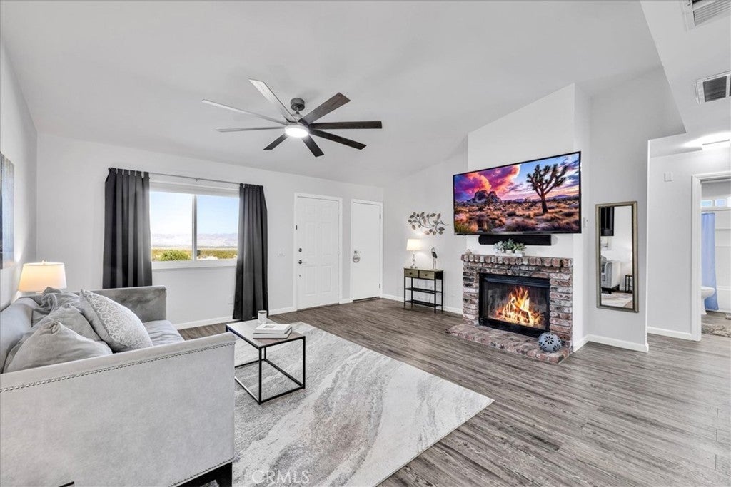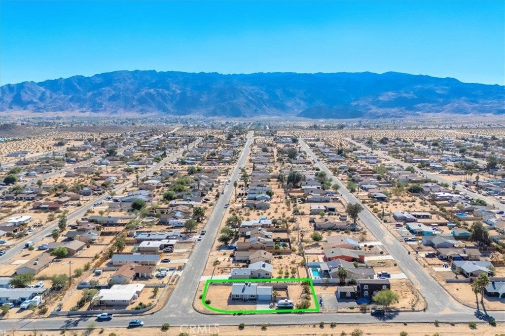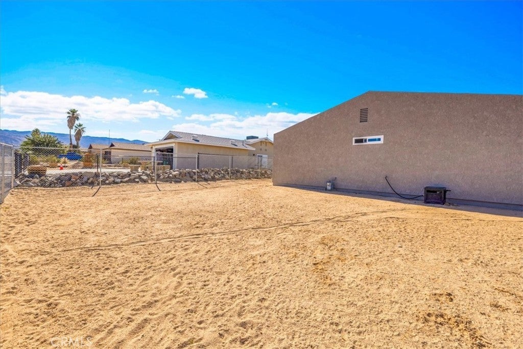 This Lovely Home is a Must-See! Being sold turn-key furnished, this is an amazing opportunity for all! Discover the perfect blend of comfort, style, and functionality in this beautifully updated home situated on a spacious corner lot. Set across from wide-open desert landscape, this property offers sweeping, unobstructed panoramic views to the North, enjoyed from both the exterior and the expansive picture window that brings the scenery right into your living room. Inside, fresh interior paint creates a bright, modern feel throughout. Newer laminate flooring compliments the cool tones. The cozy fireplace makes this the perfect place to unwind after a long day, or to host memorable gatherings with family and friends. This home is packed with upgrades, including a newer roof, newer HVAC system plus energy-saving evaporative cooling, new dual-pane windows, and a new garage door opener for added convenience. Fresh, plush carpeting enhances the bedrooms, while the bathroom showcases a brand-new tub and shower enclosure along with an updated vanity featuring double sinks. For additional comfort and versatility, a mini-split air-conditioning system has been installed in the garage, creating a pleasant environment for doing laundry, tackling projects, or completing everyday tasks. An attractive, large sliding glass door off of the kitchen leads to an inviting courtyard complete with a cozy firepit, perfect for evenings under the desert sky, outdoor dining, or relaxed gatherings with friends. Ideal for those who value outdoor space and versatility, the property features separate fenced areas perfect for pets, gardening, or gatherings with family and friends. With abundant parking, ample enough to accommodate an RV, you’ll have room for all your vehicles, toys, and guests. Move-in ready and thoughtfully improved, this home offers exceptional value, comfort, and unmatched desert vistas, all in one delightful desert package. Conveniently located just minutes from the 29 Palms Marine Corps Base. Don’t miss your chance to make it yours! Call an agent today!