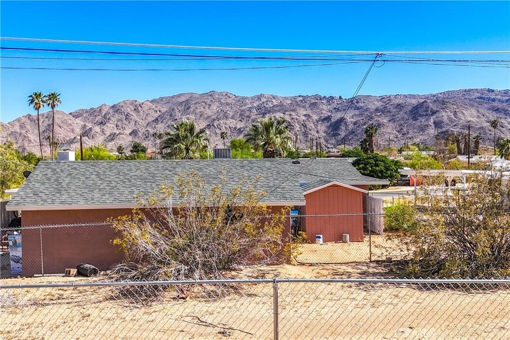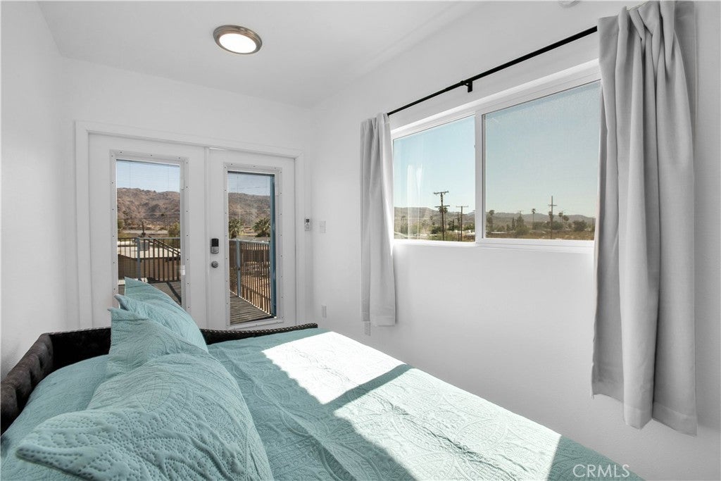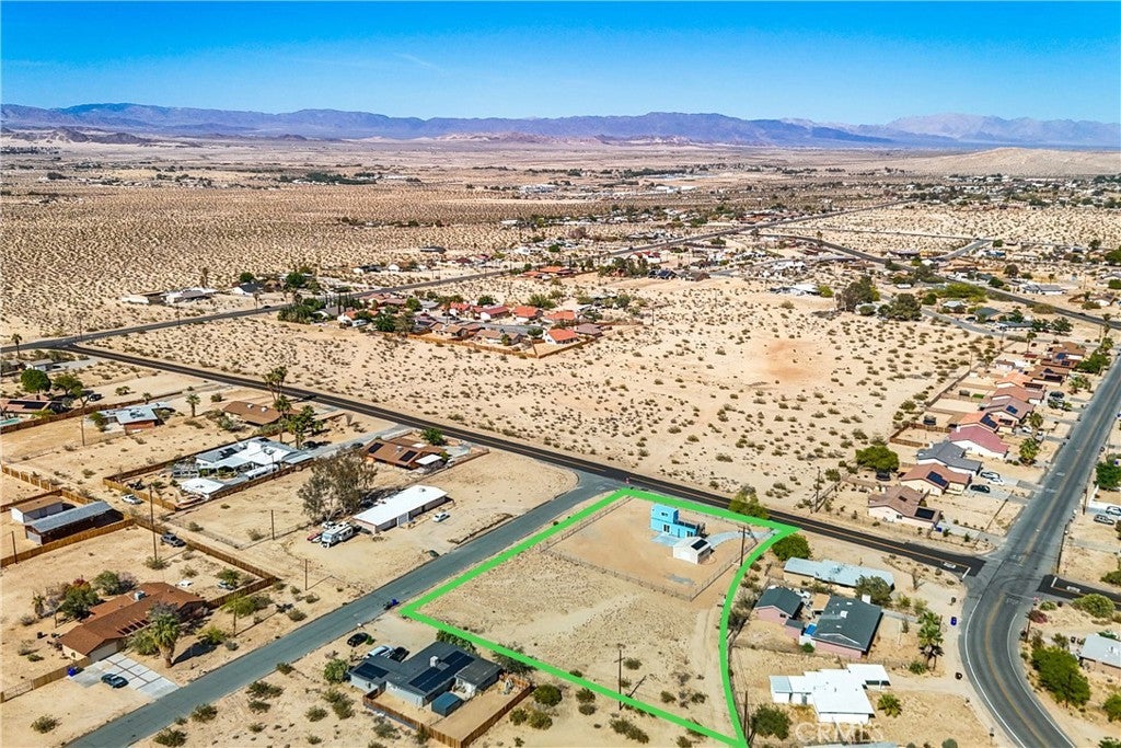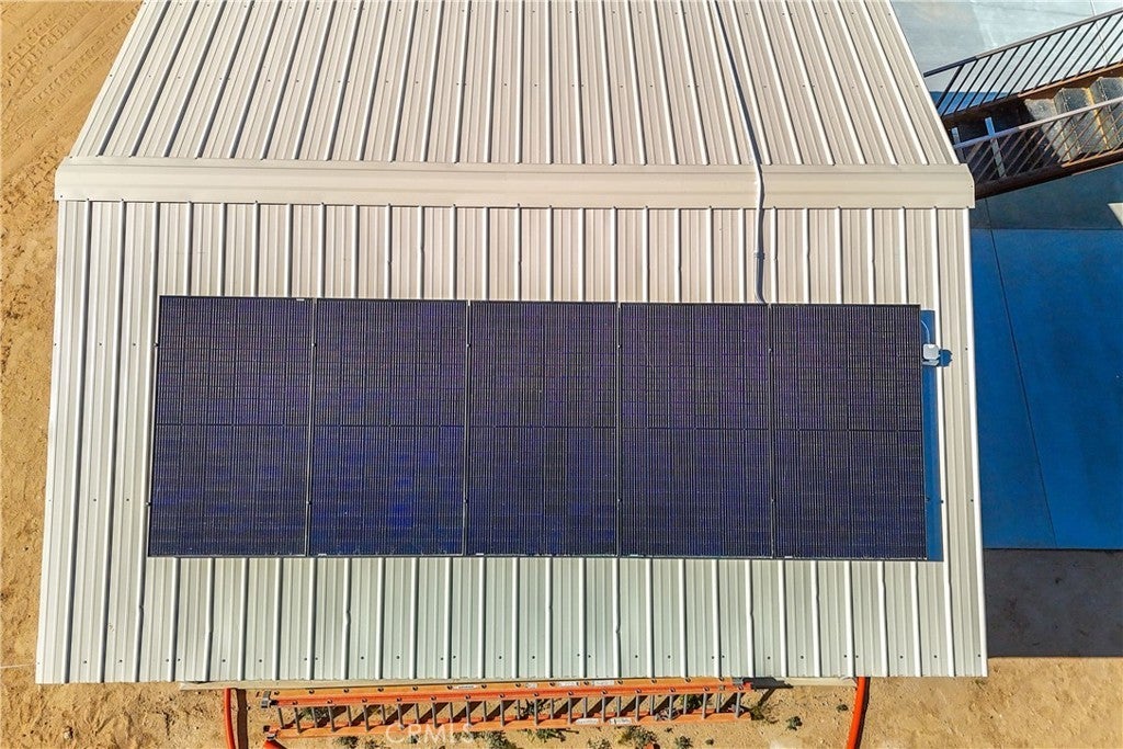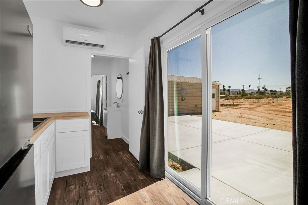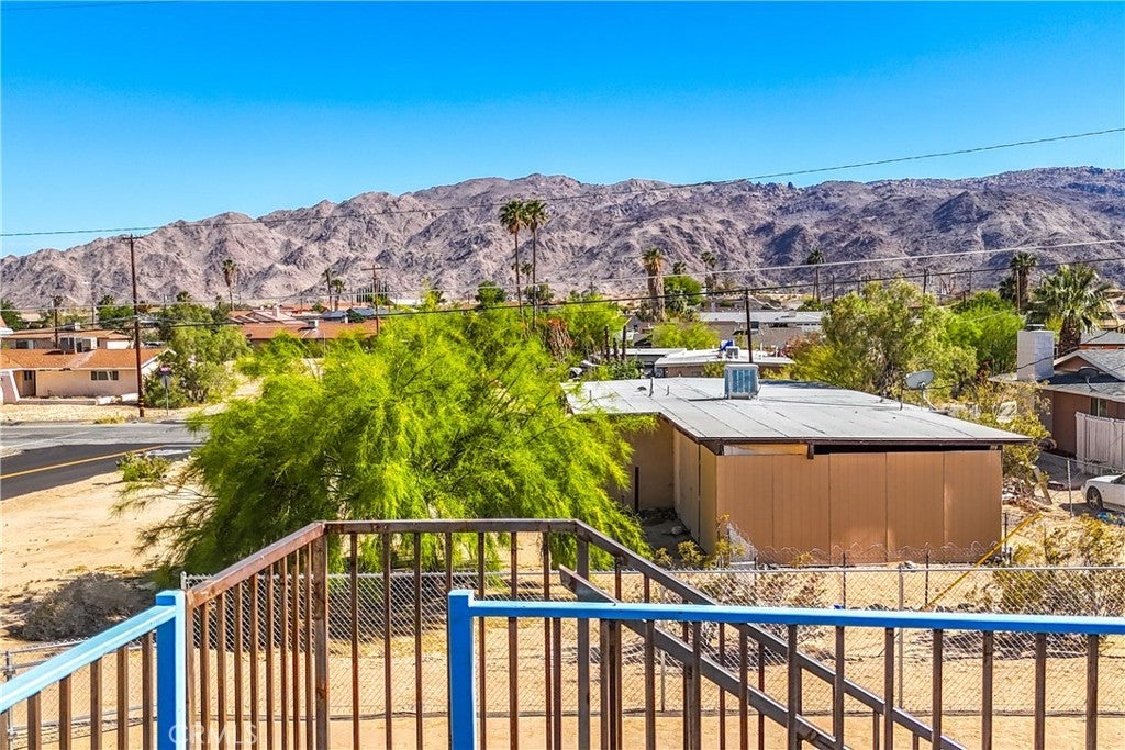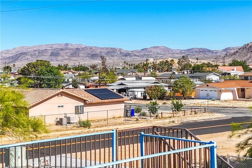 Unique Shipping Container Home on Over 1 Acre! Discover this extraordinary property, perfect for those seeking an eco-friendly, modern living experience in the vibrant heart of 29 Palms. This two-story shipping container home presents a rare opportunity to own a distinctive architectural gem in one of the area's most sought-after neighborhoods. Nestled on more than an acre of fenced land, this prime location offers easy access to downtown's trendy shopping and dining options, as well as the breathtaking Joshua Tree National Park. The expansive lot provides abundant space for expansion, whether you envision adding a pool, an outdoor kitchen, or other desirable amenities. Inside, the home features an open-concept design with beautiful stained wood floors, contemporary lighting, dual-pane windows, and energy-efficient mini-split HVAC units. The kitchen is equipped with modern appliances, butcher block countertops, and a deep sink, seamlessly merging with the living area. Both bathrooms are designed with stylish walk-in tiled showers, modern vanities, and built-in shelving. The main floor bedroom includes a ceiling fan, mini-split unit, and a sliding glass door that opens to the backyard, enhancing the indoor-outdoor flow. Upstairs, the primary suite is a true retreat, complete with a private balcony and an en-suite bath featuring a spacious walk-in shower. Adding to the property's allure is the oversized steel garage, ideal for vehicles, storage, or potential conversion into a gym or artist's studio. In the garage you'll also find an electric car charger and NEW washer & Dryer! With paved road access and an efficient solar power system, this exceptional offering is not to be missed. Seize the opportunity to own this one-of-a-kind shipping container home in the thriving community of 29 Palms. Schedule your private viewing today!