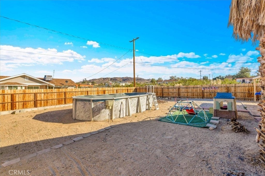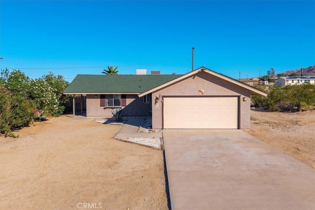 Welcome to 7429 Maude Adams Ave, a beautifully maintained 3 bedroom 2 bath home located in the quiet and desirable Hanson Track neighborhood of 29 Palms (just MINUTES from the Joshua Tree National Park East Entrance)! As you step inside you'll notice the lovely open-concept living space complete with earth-toned tile flooring, recessed lighting and large east facing windows that let in an abundance of natural light. The chefs-kitchen is anchored with an oversized island with tile countertops, amble cabinet & counter space, custom cabinetry and stainless steel appliances. This home's neutral color palette makes it extremely versatile for any decor and style. Directly adjacent to the kitchen you’ll find the formal dining area, additional cabinetry and the access door that leads to the backyard and pool area. The primary bedroom adorns carpeted flooring, a ceiling fan and a sliding glass door for private patio access while the ensuite bathroom includes a single sink vanity with generous counter space & a pocket door that separates the lavatory & walk-in shower. The two additional bedrooms also include neutral carpeting, ceiling fans and share the aesthetically pleasing hall bathroom - complete with a single sink vanity and a shower/tub combo. Not to mention, this home has dual cooling (AC & Swamp), an attached 2 car garage and leased solar panels to keep cost low year round (buyer to assume lease). Outside you'll be delighted to find a fully fenced yard with wood privacy fencing, a large covered patio, an above-ground pool and plenty of space to entertain or relax around a fire-pit on a starry desert night. With close proximity to downtown, schools, shopping, the Tortoise Rock Casino, restaurants and more, all that's missing is you! Come take a look & let this home's charming allure do the rest, your new desert home or weekend retreat awaits!