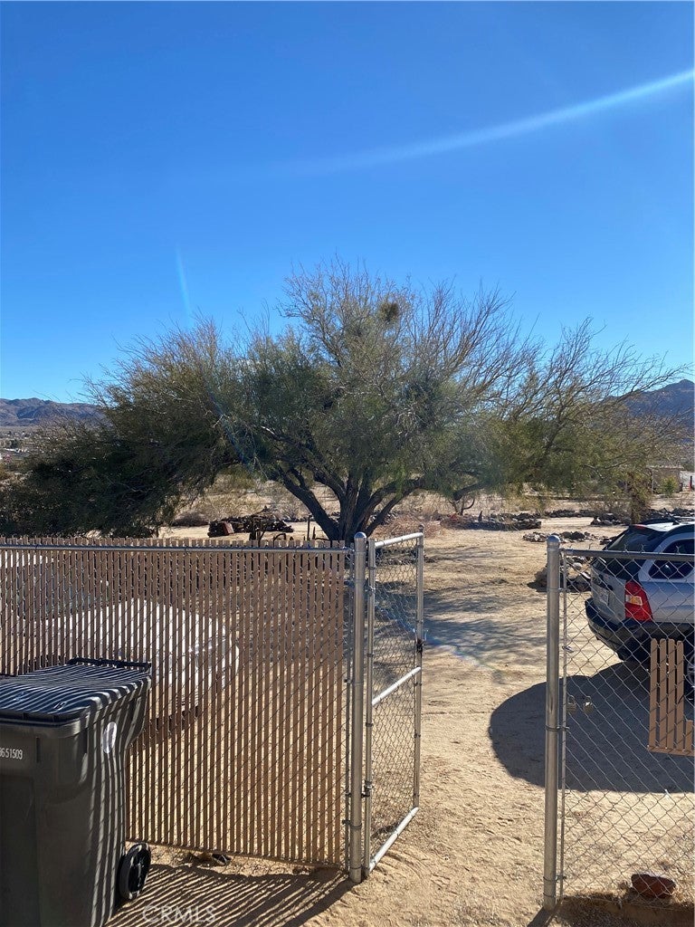 A charming little house that needs some cosmetic TLC. There is plenty of room to build as this lot of land it sits on is zoned for three more units if so desired. This makes it a developers dream. This home has solar panels, an office, laundry room, Large enclosed porch, an attached work room,and a 6 foot chain link fence around part of the property, There is a large mesquite tree which is the center piece of the property along with other landscaping. The septic and leach lines are fairly new. On the inside there are hardwood floors, knotty pine paneled walls stained with clear coat. The bedroom has inset cabinets and a chest of drawers, The home is situated about 10 mins from the East entrance of the national park and main entrance to the USMC base. If you like to gamble the 29 palms casino is 5 mins away with Laughlin or Vegas just about 2 hours away.