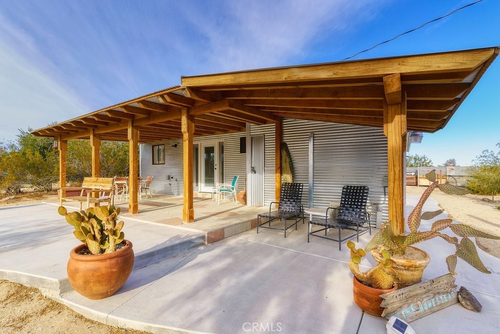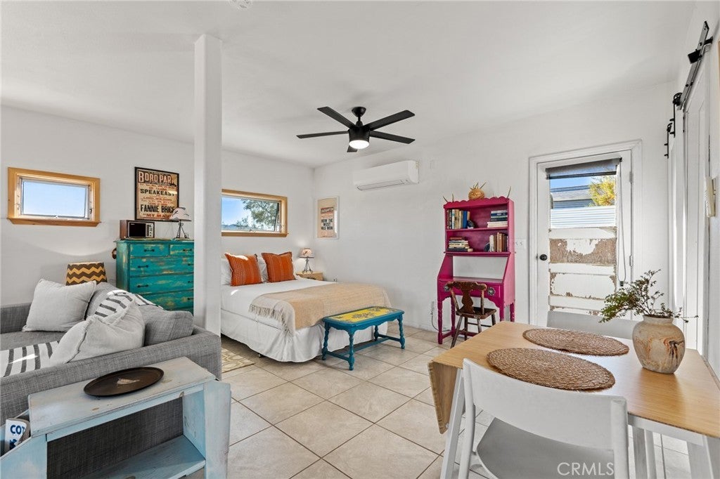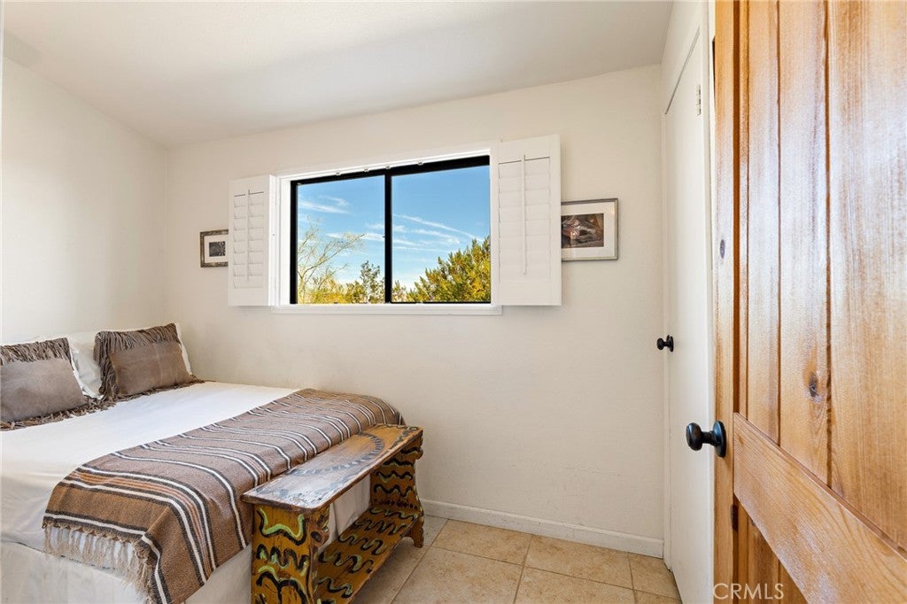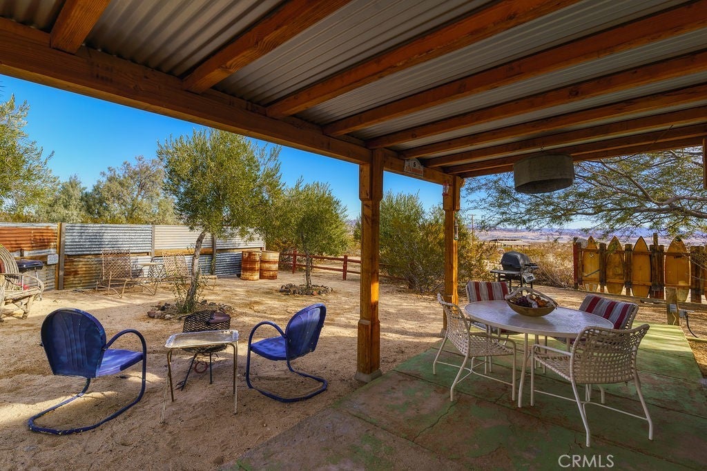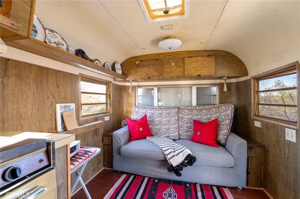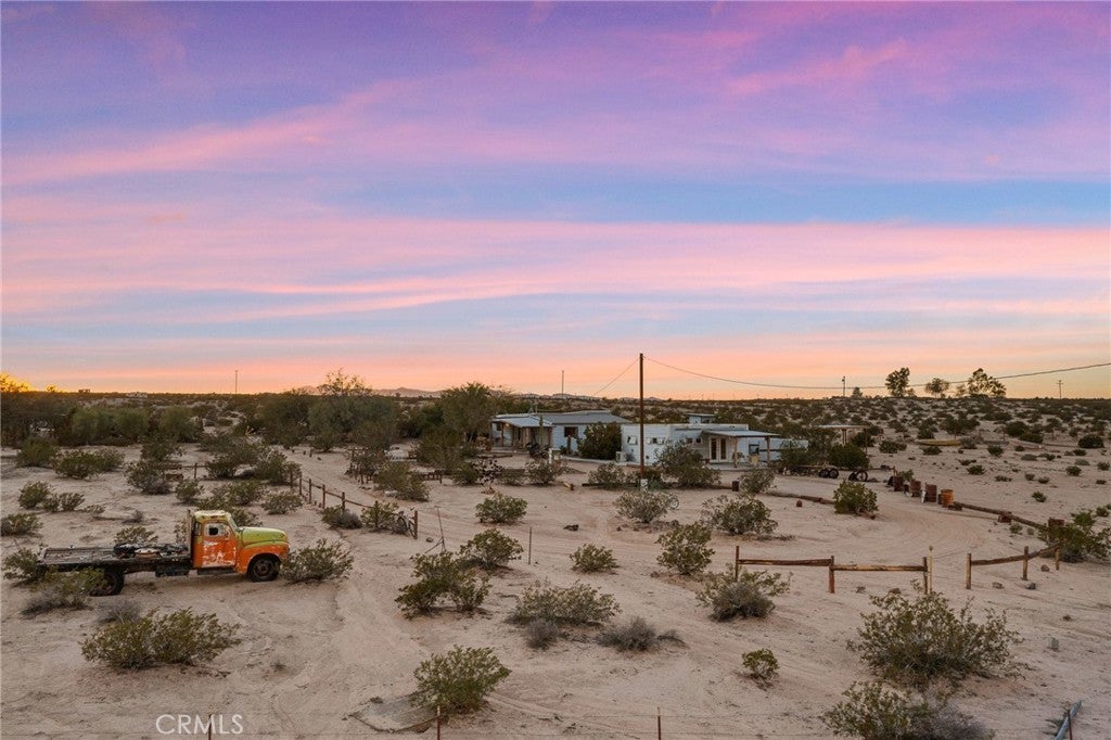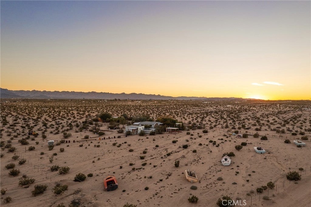 Discover your own private desert haven, where elegance and nature blend seamlessly on five enchanting acres. This remarkable compound invites you to experience a lifestyle of tranquil charm. At its heart lies a beautifully designed two-bedroom, two-bathroom main house, accompanied by a cozy studio casita complete with its own kitchenette and bath. Adding to the allure is a fully functional vintage Airstream station, thoughtfully connected to its own septic, water, and power, making it a perfect standalone retreat space. Every detail here is crafted for comfort and ease. With three newly updated septic systems and a modern electrical setup, you can enjoy peace of mind. There’s also an EV charger for added convenience. Step outside and find yourself surrounded by lush, mature olive trees and vibrant gardens, creating a green sanctuary that invites relaxation. Bordering open BLM land, you’ll enjoy breathtaking 360-degree mountain views and exceptionally dark skies perfect for stargazing. Just minutes from the western entrance of Joshua Tree National Park and the charm of downtown Joshua Tree and 29 Palms, this fully furnished short-term rental is a ready-made retreat. Whether you're looking for a perfect primary residence, a short-term rental opportunity, or a flexible mixed-use getaway, this property offers endless possibilities. (NOTE: Tax Records state 2-bedroom, 1-bathroom. Buyer is responsible to research to see if work was done with permits, and to confirm that this is a SFR and not a Rec Cabin zoning.)