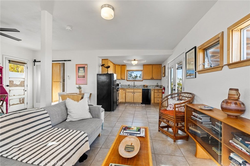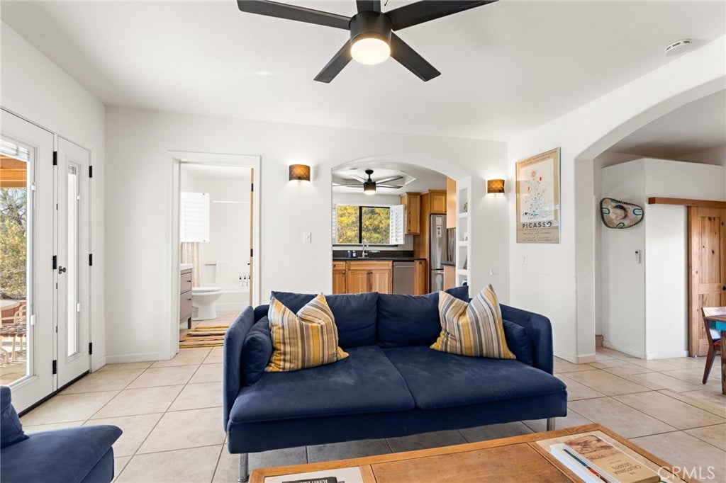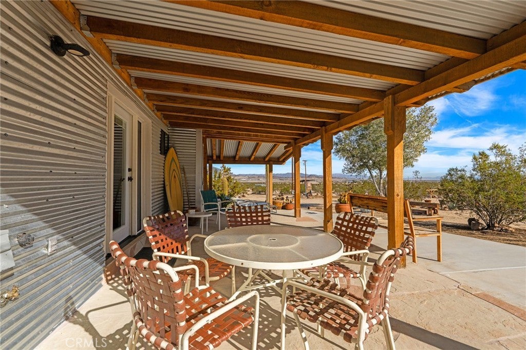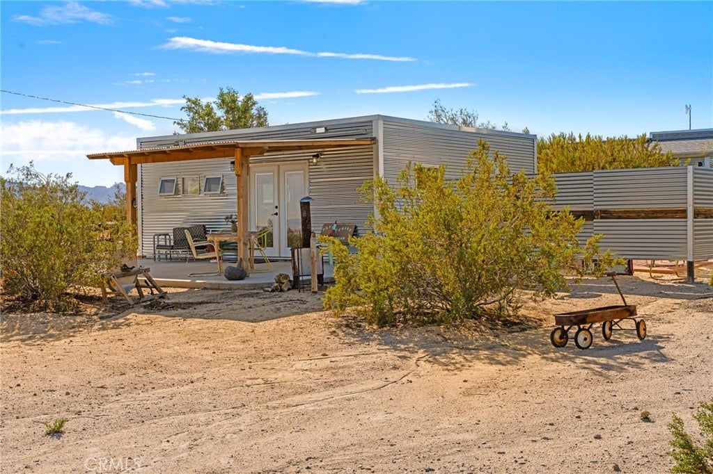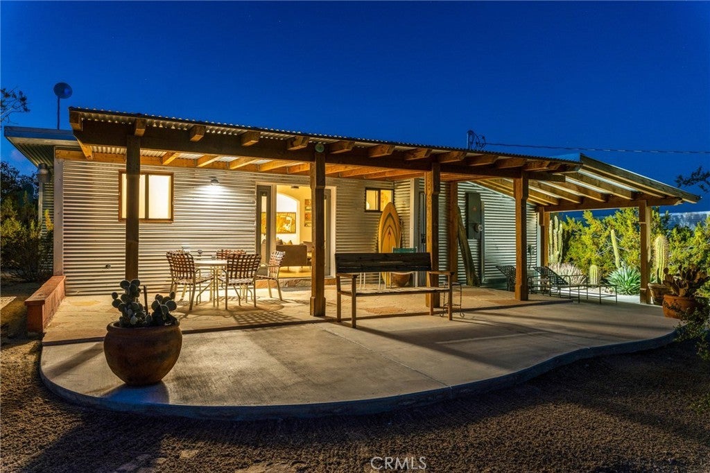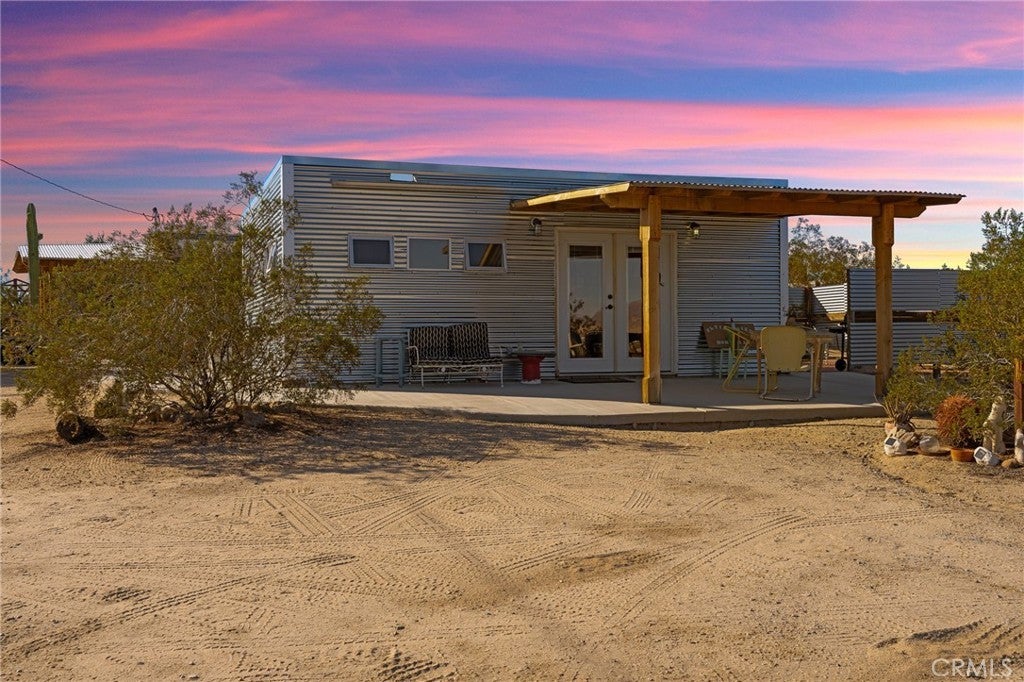 Discover your own private desert haven, where elegance and nature blend seamlessly on five enchanting acres. This remarkable compound invites you to experience a lifestyle of tranquil charm. At its heart lies a beautifully designed two-bedroom, two-bathroom main house, accompanied by a cozy studio casita complete with its own kitchenette and bath. Adding to the allure is a fully functional vintage Airstream station, thoughtfully connected to its own septic, water, and power, making it a perfect standalone retreat space. Every detail here is crafted for comfort and ease. With three newly updated septic systems and a modern electrical setup, you can enjoy peace of mind. There’s also an EV charger for added convenience. Step outside and find yourself surrounded by lush, mature olive trees and vibrant gardens, creating a green sanctuary that invites relaxation. Bordering open BLM land, you’ll enjoy breathtaking 360-degree mountain views and exceptionally dark skies perfect for stargazing. Just minutes from the western entrance of Joshua Tree National Park and the charm of downtown Joshua Tree and 29 Palms, this fully furnished short-term rental is a ready-made retreat. Whether you're looking for a perfect primary residence, a short-term rental opportunity, or a flexible mixed-use getaway, this property offers endless possibilities. (NOTE: Tax Records state 2-bedroom, 1-bathroom. Buyer is responsible to research to see if work was done with permits, and to confirm that this is a SFR and not a Rec Cabin zoning.)