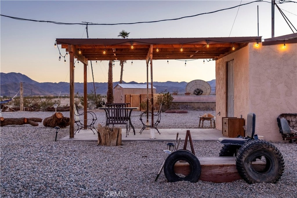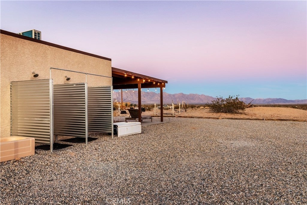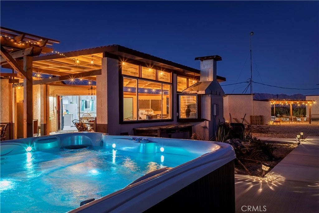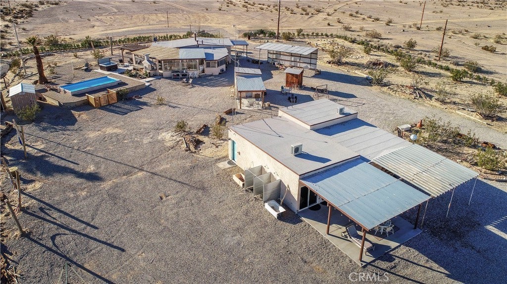 Escape to a secluded 20-acre corporate retreat compound designed for privacy and serenity. This exceptional property boasts three homes and 4 APNs, a tranquil yoga room, and two inviting pools, creating the perfect setting for both relaxation and recreation. The central building features a sunlit yoga studio with sliding glass doors that open to stunning views of the expansive desert landscape. A bright kitchen, complete with a dining table, lounge chairs, and sliding glass doors, offers an ideal space for meals or quiet moments with tea. The main house includes an open bedroom, two bathrooms with showers, a covered patio lounge, and two outdoor showers. Step outside to a shaded patio that leads to a pool and deck, where you can unwind while taking in the vast desert scenery. An exterior shaded area features a private outdoor bathroom equipped with a sink, shower, and toilet. Surrounded by thousands of acres of untouched wilderness to the east, this property provides a true connection to nature. One of the homes is approved for short-term rentals, presenting an excellent investment opportunity. Located in a prime area, the retreat is just moments away from local activities and events, including hiking, exploring the wilderness, and participating in nearby community gatherings. Don’t miss the chance to own this extraordinary retreat, where tranquility meets adventure.