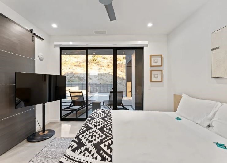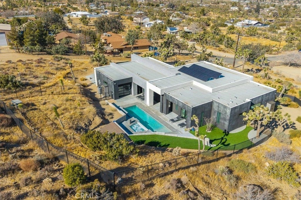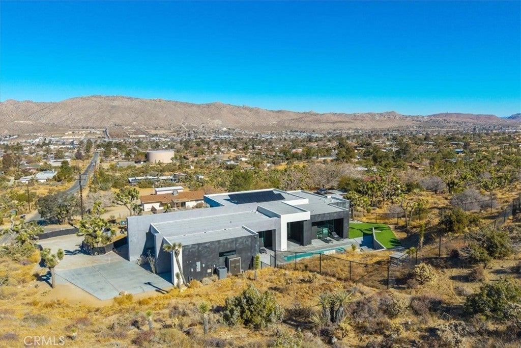 KING OF THE MOUNTAIN! Come and see this stunning modern retreat in Yucca Valley. Discover this exceptional 21-acre property, a true oasis that combines luxury and comfort in the heart of the desert. Spanning an impressive 2,089 square feet, this modern build boasts three spacious bedrooms and three beautifully appointed baths, making it ideal for families or anyone seeking a serene getaway. Step inside to find high ceilings that create an airy ambiance throughout the open kitchen and living areas. The kitchen is designed for both functionality and style, perfect for entertaining or enjoying quiet evenings at home. Cozy up by the fireplace in the living room, providing warmth and a touch of elegance during cooler desert nights. For fitness enthusiasts, the expansive garage includes a dedicated gym space, allowing you to maintain your workout routine without ever leaving the property. The three-car garage offers ample storage and convenience. Outside, indulge in your private in-ground pool and spa, perfect for cooling off during hot summer days or unwinding under the stars; surrounded by privacy fencing perched on top of a mountain. The stunning mountain views and unique desert landscape enhance the already picturesque setting, providing a truly tranquil experience. This property is not just a home; it’s a very successful vacation rental, making it a fantastic investment opportunity. Whether you're looking to escape to the desert or seeking a profitable venture, this Yucca Valley gem has it all.