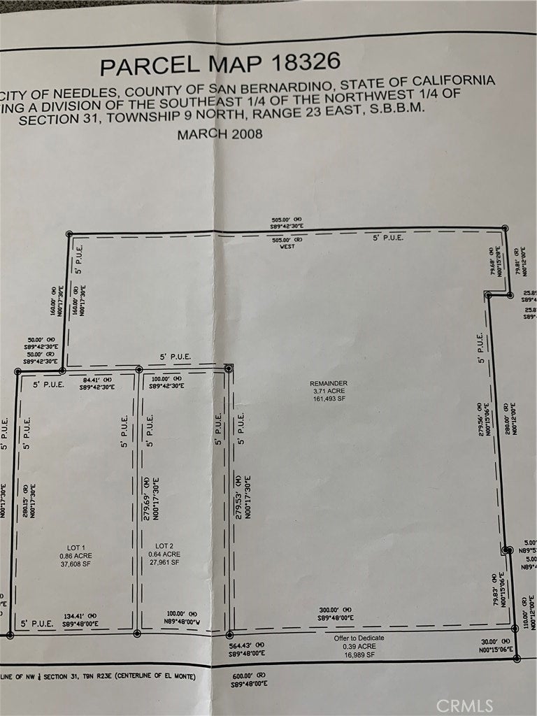 TWO PARCELS FOR A TOTAL OF 4.55 ACRES! RESIDENTIAL LAND! This land is perfect for someone looking to build their own home or a DEVELOPER looking to build a track of homes. A very desirable area with great views. The first parcel is the perfect space for a custom built home. The additional parcel would be perfect to have plenty of space around you. The other option is for a developer looking to build a series of homes in a great area of Needles. Possibility of selling parcels separately as well as optional seller financing. Utilities would need to be accessed and tied in from the nearby streets to each individual lot. Call today for more information! TWO PARCELS # 018523373000 and 0185233720000