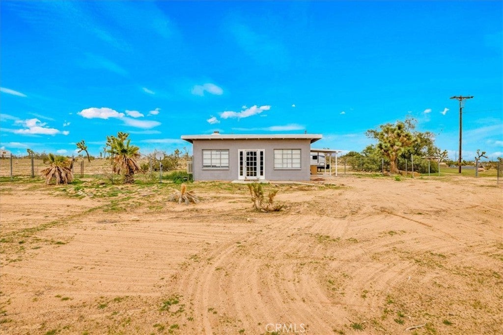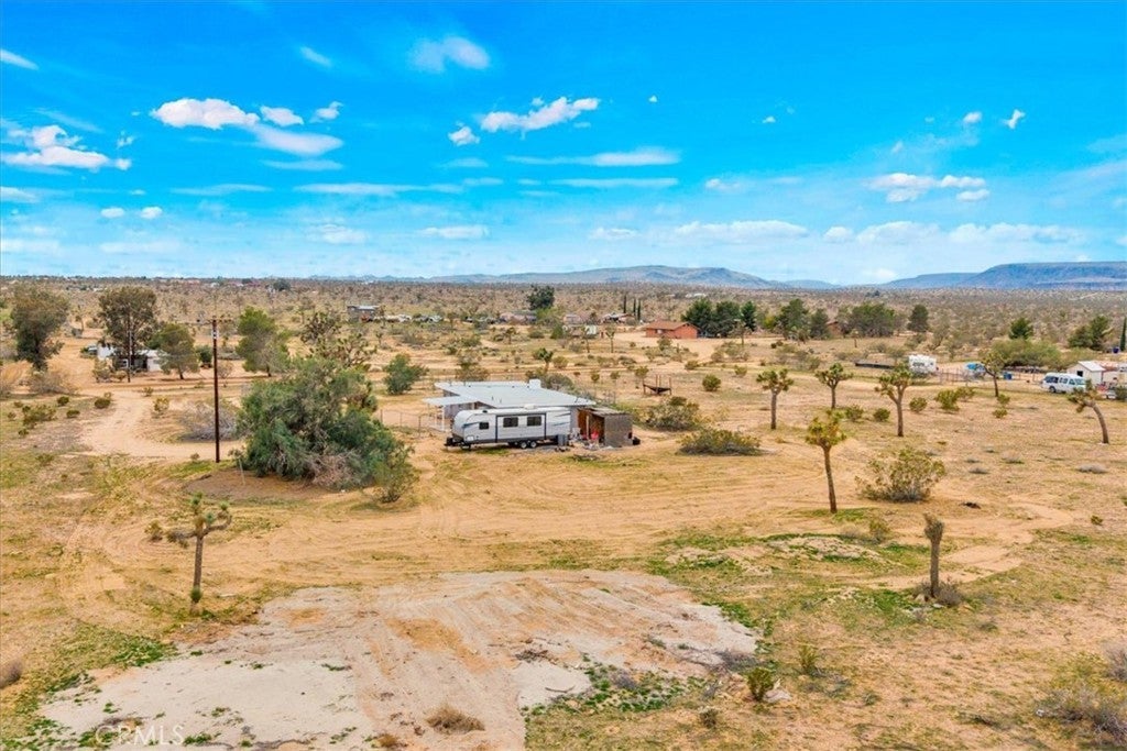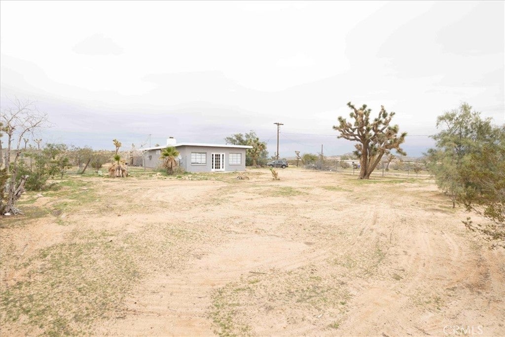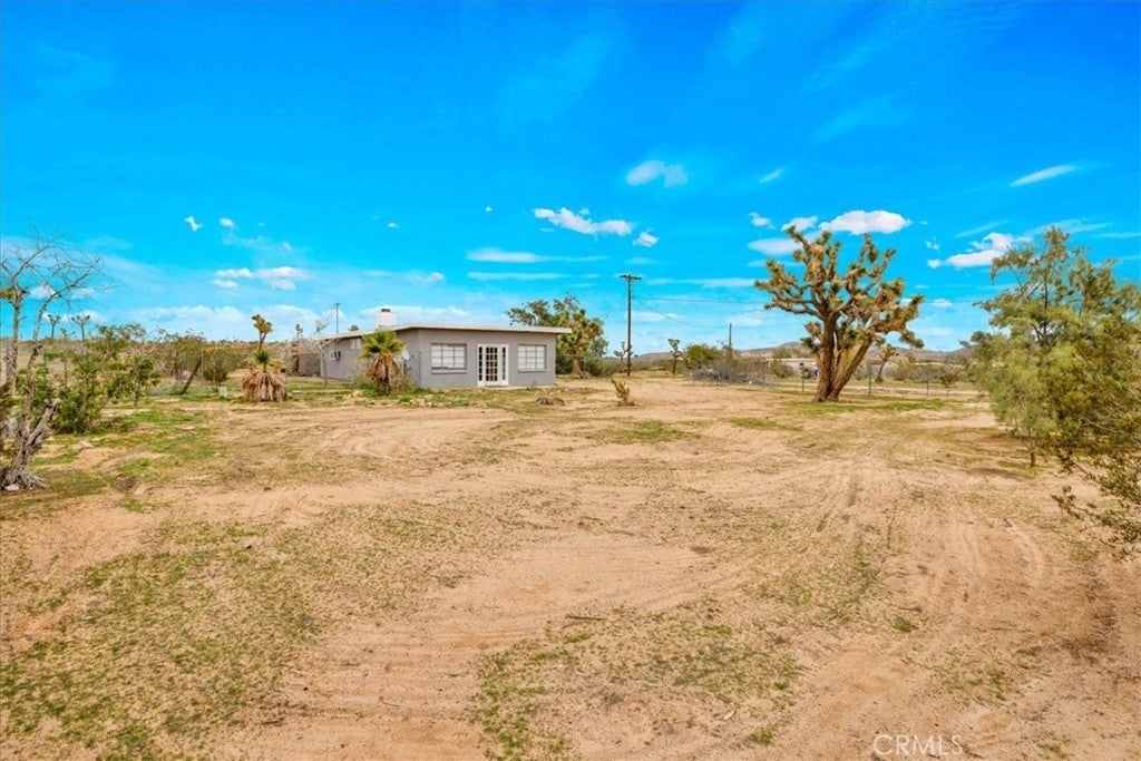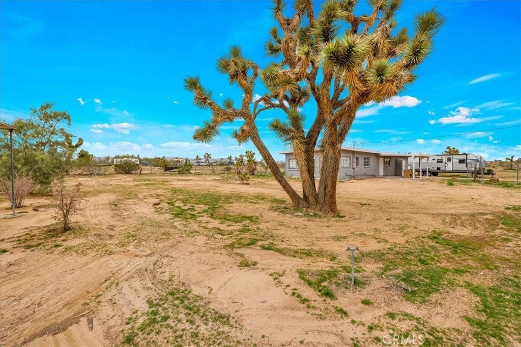 Set on 2 acres in the sought-after Flamingo Heights area of Yucca Valley, this 3 bedroom, 2 bath home offers space, privacy, and classic high desert character surrounded by mature Joshua trees and wide-open views. The expansive living room is a true centerpiece, featuring wood-beamed ceilings, wood-look flooring, built-in storage, and a dramatic stone hearth corner fireplace that anchors the space with warmth and charm. The kitchen is both functional and inviting, with quartz countertops, warm wood cabinetry, and large windows that bring in natural light and desert scenery. The primary bedroom is generously sized and filled with light, complete with a ceiling fan and an attached bath featuring a jetted tub/shower combo and a stylish basin sink. A comfortable guest bedroom includes two closets for ample storage, while the second bathroom stands out with a claw foot tub, a separate quartz-enclosed shower, and a pedestal sink. The third bedroom offers large windows and its own outdoor access, making it ideal for guests, a home office, or creative space. Outside, the property showcases mature Joshua trees, open desert surroundings, and sweeping views that define the Flamingo Heights lifestyle. With room to roam and a layout that blends rustic appeal with thoughtful updates, this home is a peaceful desert retreat with timeless character.