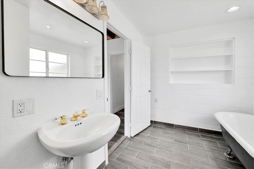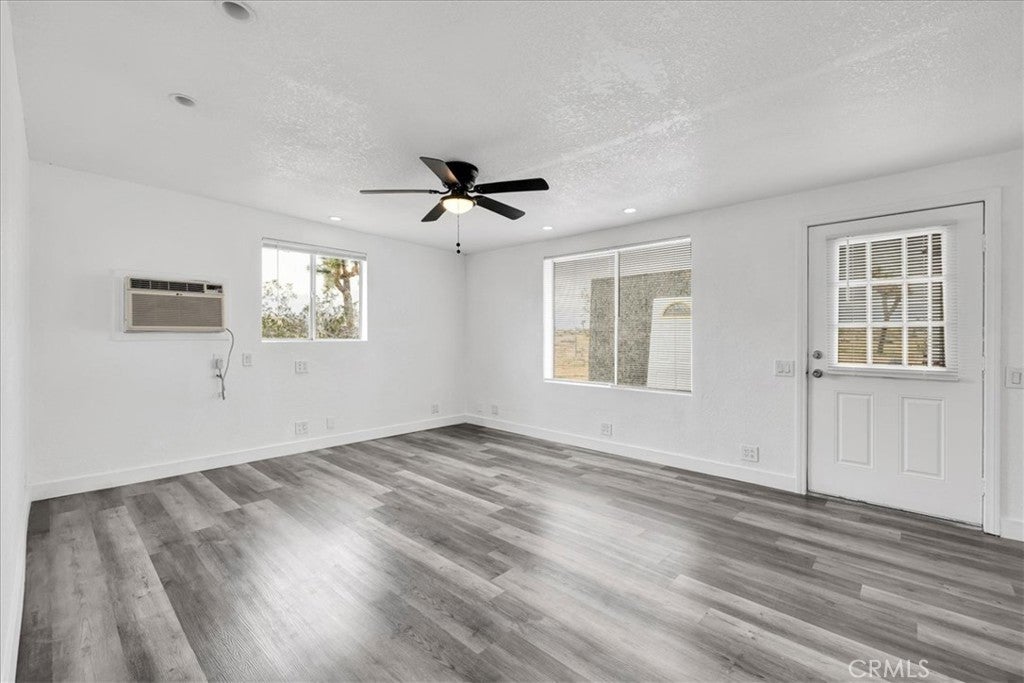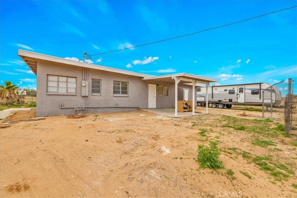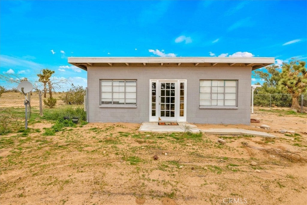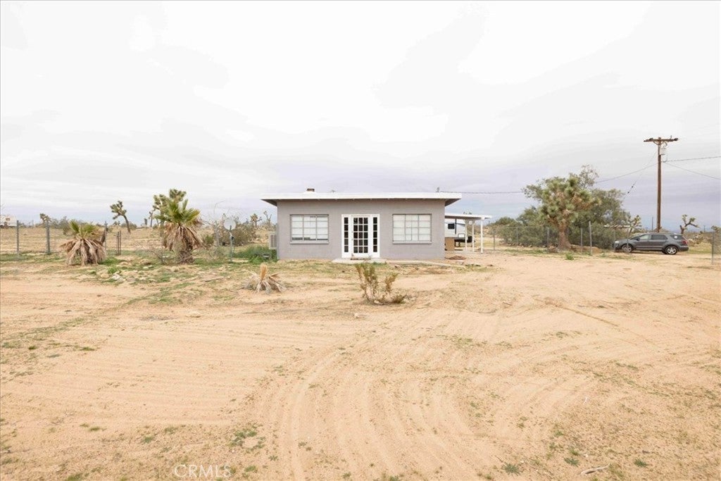 Set on 2 acres in the sought-after Flamingo Heights area of Yucca Valley, this 3 bedroom, 2 bath home offers space, privacy, and classic high desert character surrounded by mature Joshua trees and wide-open views. The expansive living room is a true centerpiece, featuring wood-beamed ceilings, wood-look flooring, built-in storage, and a dramatic stone hearth corner fireplace that anchors the space with warmth and charm. The kitchen is both functional and inviting, with quartz countertops, warm wood cabinetry, and large windows that bring in natural light and desert scenery. The primary bedroom is generously sized and filled with light, complete with a ceiling fan and an attached bath featuring a jetted tub/shower combo and a stylish basin sink. A comfortable guest bedroom includes two closets for ample storage, while the second bathroom stands out with a claw foot tub, a separate quartz-enclosed shower, and a pedestal sink. The third bedroom offers large windows and its own outdoor access, making it ideal for guests, a home office, or creative space. Outside, the property showcases mature Joshua trees, open desert surroundings, and sweeping views that define the Flamingo Heights lifestyle. With room to roam and a layout that blends rustic appeal with thoughtful updates, this home is a peaceful desert retreat with timeless character.