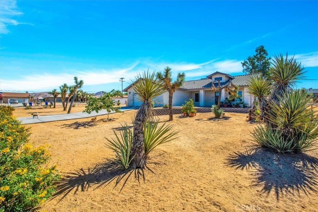 Built in 2021, this beautifully maintained 4 bedroom, 2 bath home is located on a prime corner lot and offers a bright, modern feel throughout. The light interior palette is complemented by sleek, contemporary fixtures and a thoughtfully designed floor plan. Energy efficient solar panels (the ones that came with the house are owned and the is a $14,360 balance on the additional balance) add long term savings, while the RV hookup provides added flexibility for storage, travel needs, and guests. This home has interior fire sprinklers to enhance safety and peace of mind, as well as help reduce your homeowners insurance costs. Combining modern construction, efficiency, and everyday comfort in a desirable setting - you're just 5 minutes from the Joshua Tree and the National Park, Pioneertown, lots of local bites and more!