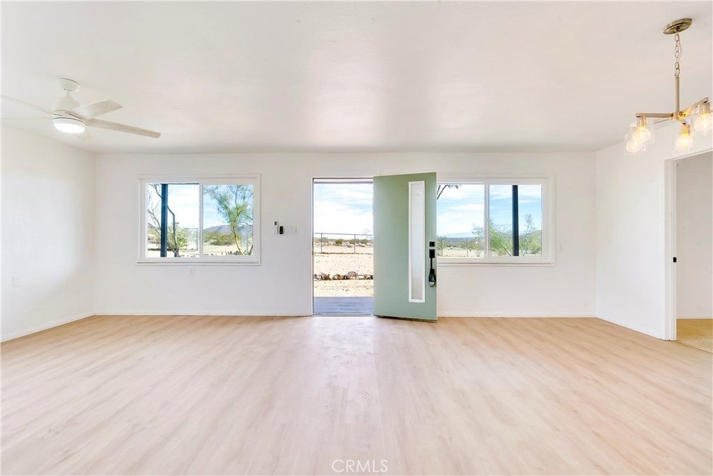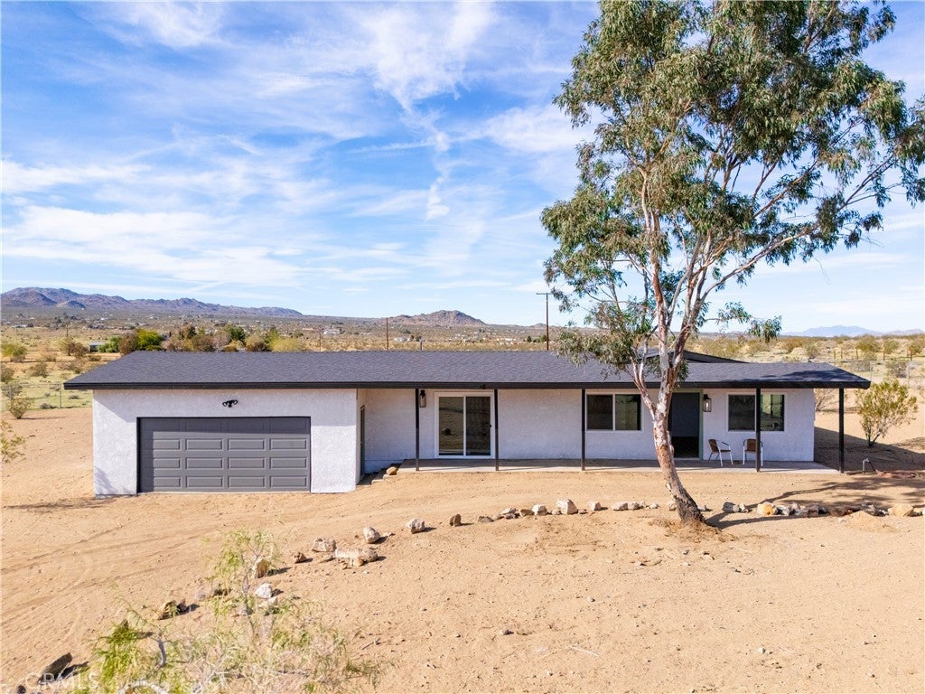 Your desert sanctuary awaits. Come and see this beautifully renovated 4 bedroom, 2 bathroom home situated in peaceful Landers where desert tranquility is the norm and the traffic of Los Angeles is a distant memory. Do you like new? This home has been professionally renovated with a new roof, new insulation, new plumbing, heating and cooling, new water heater, new concrete septic tank, new bathrooms and kitchen, new dual pane, vinyl replacement windows throughout, new appliances, new garage door and opener, house newly painted inside and out...you just have to come see it. Do you like beautiful views? This home allows you to see nearby hilltops lighting up with morning sunrise and evening sunset and views to the horizon in the other direction. The stars at night shine extra bright in Landers and the tranquility of the desert is perfect. This home works exquisitely as a primary residence, investment property or short term rental or a sweet second home. Come see something well done and well located and find your desert abode today. Near to the famous La Copine restaurant, the Integratron and the infamous Giant Rock of Landers, it's 25 minutes to Downtown Joshua Tree and 40 minutes to Downtown Palm Springs. You feel far away from the madding crowd but you are close to groceries. It's a perfect balance. Come see it soon, you will not be disappointed.