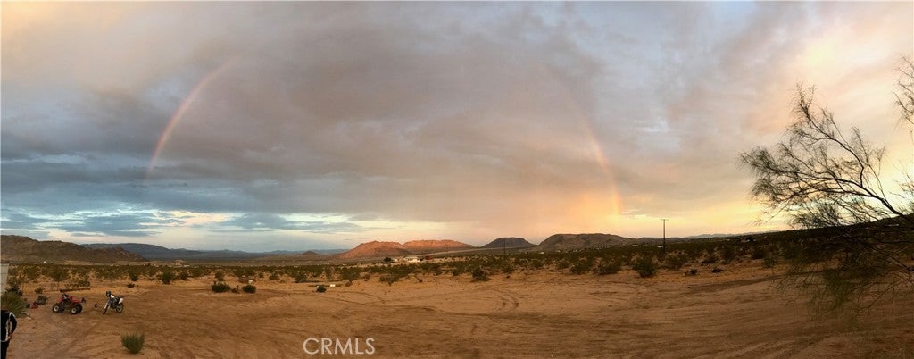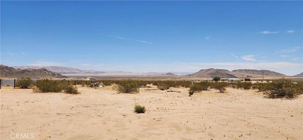Price adjusted! Seize this incredible opportunity to create your ideal desert sanctuary near Giant Rock, the Johnson Valley HOV area, and Joshua Tree National Park. This one-bedroom home was converted into two identical-sized bunkbed rooms for flexibility and privacy. The home boasts breathtaking 360-degree views, inviting you to immerse yourself in peaceful desert surroundings. The large 5-acre parcel has room for the largest of dreams. Smartly designed vacation rentals are in the area, and due to its location, year-round activities are common. A stackable washer and dryer, an outdoor structure with multiple uses, many fence posts, and a large storage container are included. Imagine evenings under a sky full of stars, where you feel you can touch. The daily sunrises and sunsets are works of art. It's no wonder artists and musicians find inspiration here. Leave city life behind for the tranquility and inspiration the high desert offers.