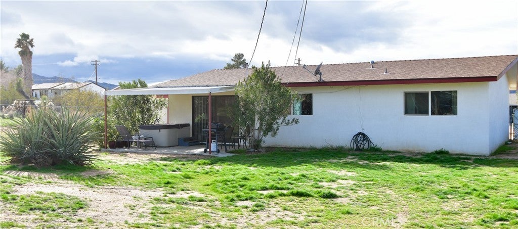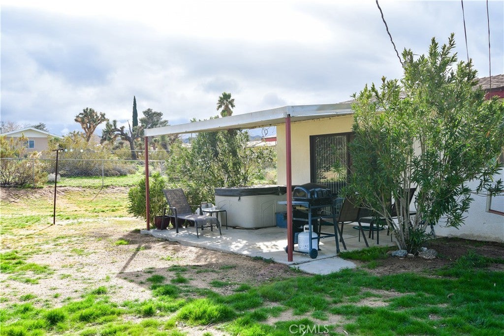 Welcome to this inviting Yucca Valley home located in a quiet residential neighborhood just minutes from Hwy 62 and local shopping. A well-maintained 1,188 sq ft home situated on a generous .41-acre lot in a quiet Yucca Valley neighborhood. This 3-bedroom, 2-bath property has seen extensive updates within the last four years, including a new roof, stucco, exterior paint, windows, HVAC system, and water heater. The remodeled kitchen features modern cabinetry, granite countertops, and new appliances, all capable of operating on natural gas or electric. Both bathrooms have been fully remodeled, complemented by new vinyl flooring, fresh carpet throughout, and fresh interior paint. The home is connected to city sewer and offers excellent outdoor living with a fully fenced backyard, covered patio, and hot tub that will remain with the property. Additional features include a garage with custom workbench and cabinets and a storage shed with built-in shelving. A move-in ready home with space, privacy, and thoughtful upgrades throughout.