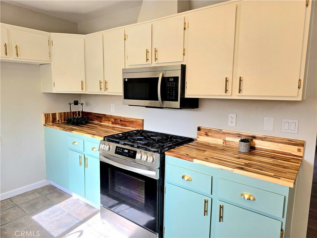 Available NOW! Welcome to the Perfect Family Home: a 3-bedroom, 2-bath gem located in the heart of 29 Palms, CA. An updated kitchen provides a natural asthetic with custom butcher block counter tops and tasteful colors. There are updated lighting fixtures in every room, and tasteful fixtures as well. This property boasts a spacious 2-car garage, providing ample space for vehicles or additional storage. The fenced yard offers a secure and private outdoor space, perfect for enjoying the beautiful California weather. Each side of this home provides extra privacy with no houses adjoining. With its close proximity to town, you'll have easy access to local amenities and the base, making everyday errands a breeze. This home combines comfort, convenience, and charm, making it a true standout in the neighborhood. Don't miss out on this opportunity to make this gem your own.