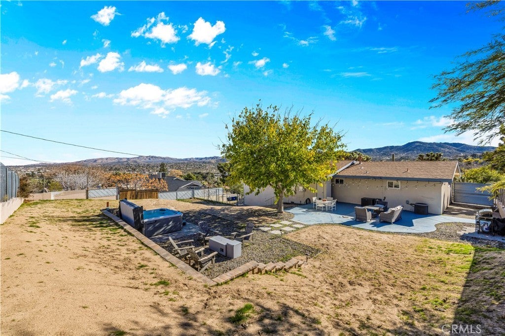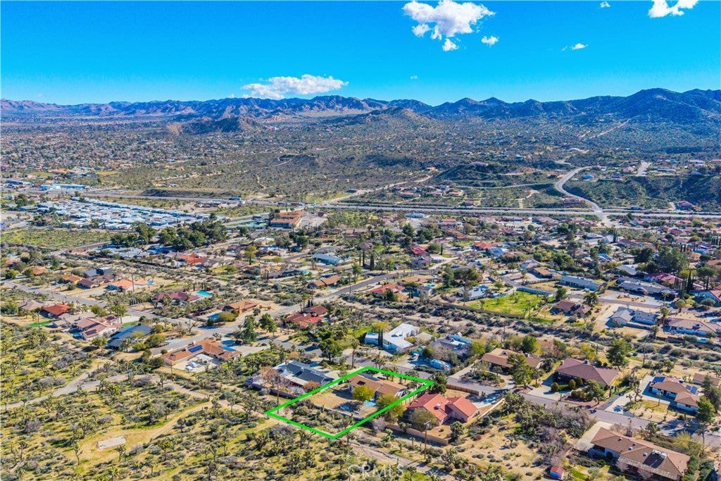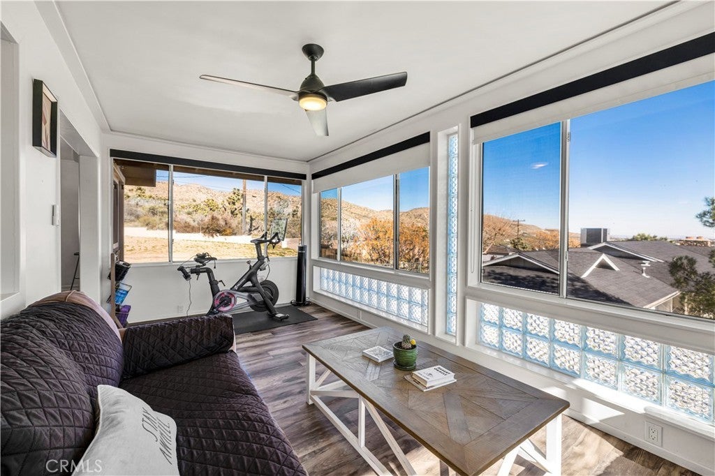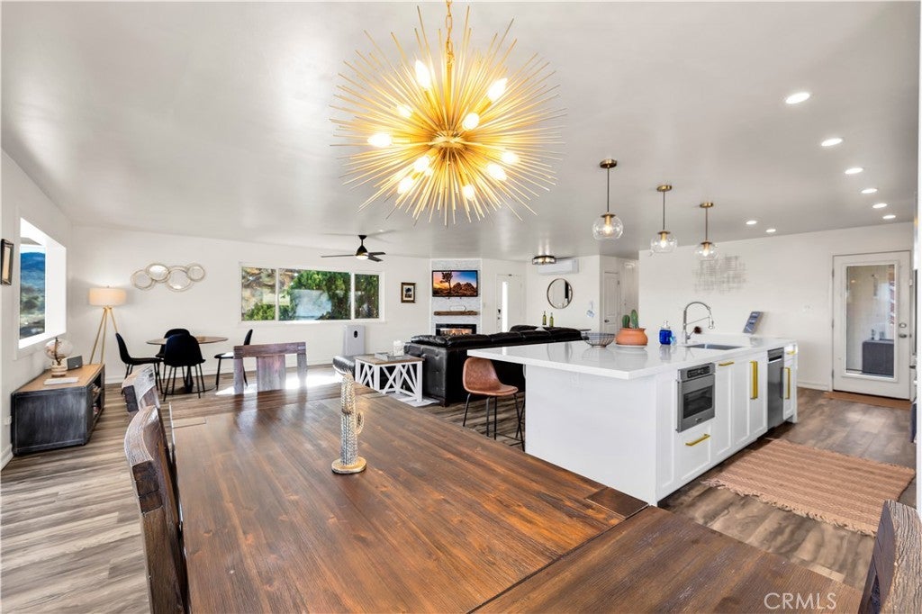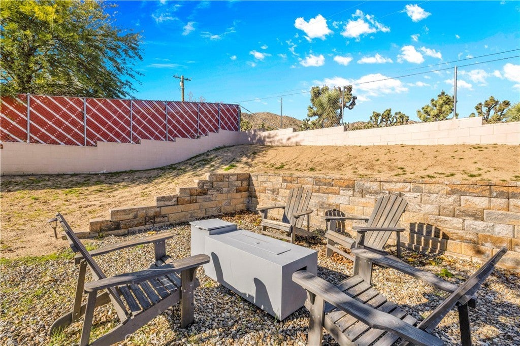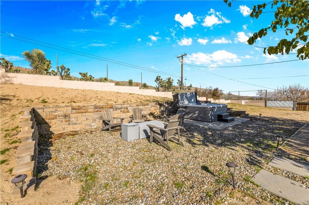 Welcome to this beautifully remodeled 2-bedroom, 2-bathroom home located high in the desirable Country Club Estates neighborhood of Yucca Valley—just up the street from the local golf course. This home is a turnkey short-term rental and offers elevated views, stylish upgrades, and everyday functionality. As you arrive, you’ll love the curb appeal, mature landscaping, and the convenience of two long concrete driveways providing ample parking—perfect for RVs, trailers, or toys. A drive-through gate leads to the fully fenced backyard for added versatility. Inside, you’re greeted by an open-concept layout with luxury vinyl plank flooring throughout. The living, dining, kitchen, and sunroom flow seamlessly, offering a massive combined living space filled with natural light and panoramic desert views. The fully remodeled kitchen features beautiful cabinetry, quartz countertops, a large center island, high-end Viking stainless steel appliances, ample storage, and even a hidden laundry area tucked behind custom cabinet doors. The sunroom, with its retro glass block and sweeping views, serves as a bright and stylish bonus space. The spacious primary suite includes a walk-in closet and a stunning ensuite bathroom featuring dual sinks, a large walk-in tile shower with dual rain showerheads, and sleek glass panels. The guest bathroom is equally impressive, with dual sinks and a fully remodeled shower/tub combo. The additional bedroom is generously sized and well-appointed. Step out back to enjoy the expansive concrete patio—perfect for entertaining—along with a private spa and fire pit. Beyond the yard, you'll enjoy the breathtaking view of thousands of Joshua trees and untouched desert landscape. This home has been thoughtfully upgraded with energy-efficient dual-pane windows, a newer electrical panel and mini-splits throughout for zoned heating and cooling. It also features an affordable leased solar system at approximately $175/month, keeping energy costs manageable. The home can be sold fully furnished, this home is truly turnkey—ideal for continued short-term rental income or as your own desert escape. Don’t miss this rare opportunity to own a move-in-ready, fully upgraded home with incredible views, designer finishes, and top-notch amenities in one of Yucca Valley’s most desirable neighborhoods. Schedule your private showing today!