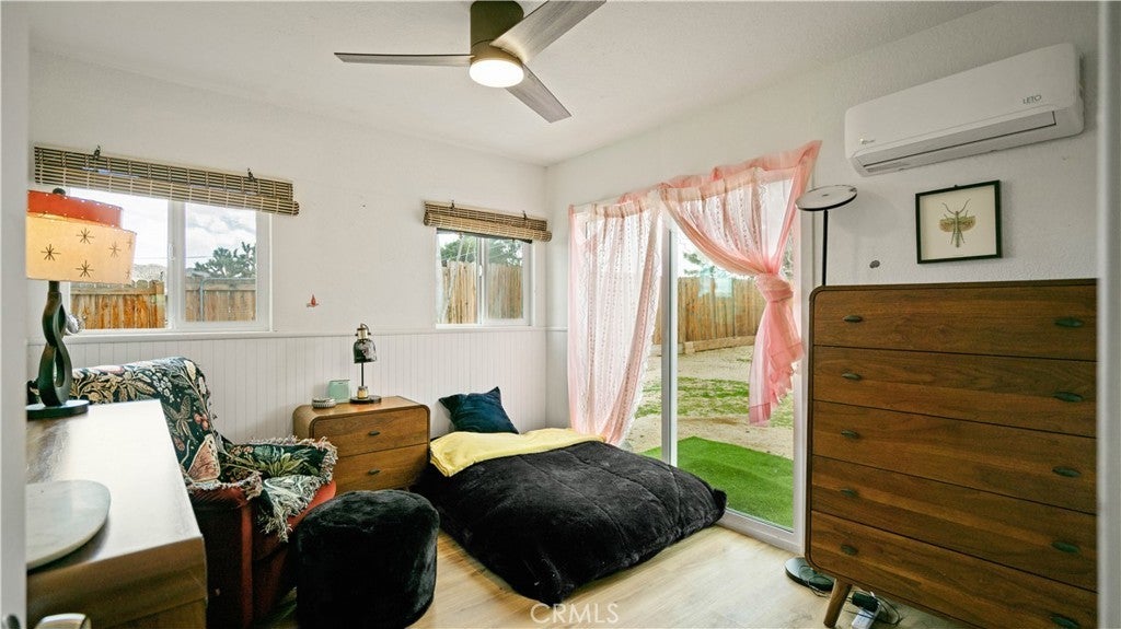 Nestled in the heart of Yucca Valley, this charming 2-bedroom, 1-bath cottage is a cozy retreat that blends comfort with character. Whether you're looking for a peaceful getaway or a full-time desert sanctuary, this home offers warmth and efficiency with ductless heating and air conditioning, keeping you comfortable year-round. Step inside to discover an inviting living space filled with natural light, showcasing thoughtful details that enhance the cottage’s welcoming atmosphere. The kitchen is both functional and charming, making meal prep a delight, while the two well-sized bedrooms provide a restful escape. Outside, enjoy the beauty of desert living with ample yard space and a versatile shed, perfect for storage, a workshop, or creative projects. Located in a serene neighborhood, this home provides easy access to local shops, restaurants, and Joshua Tree National Park.