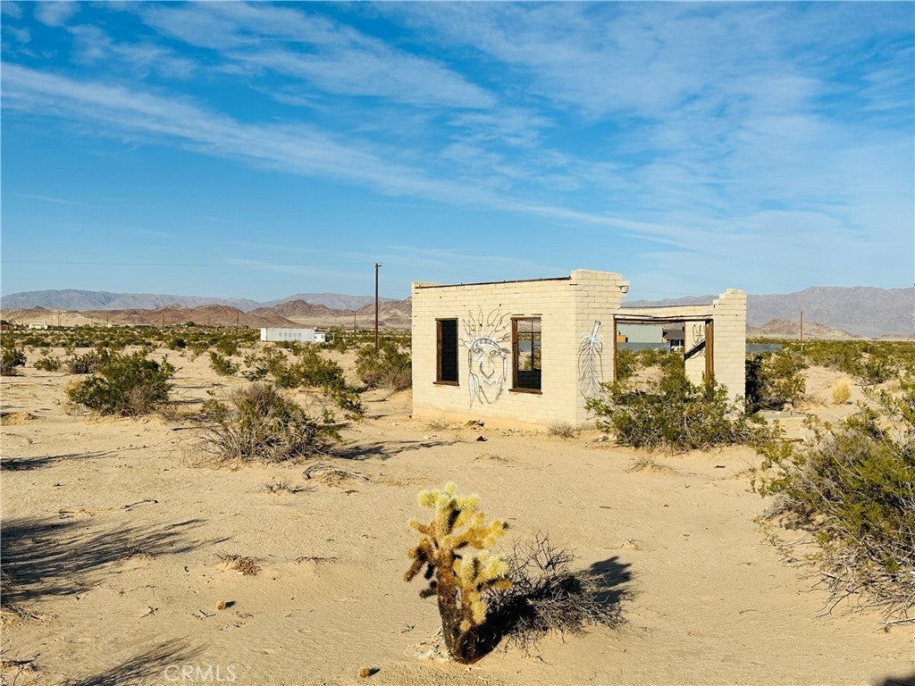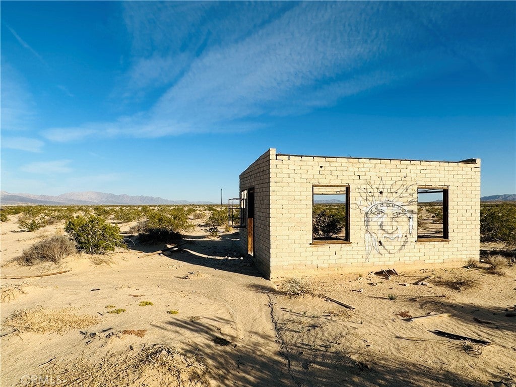 5 acres in rural Wonder Valley! Unique block cabin walls on a slab. Panoramic views across the open desert to mountains in the distance. Power in the area. Easy access - close to paved Pinto Mountain Road. Property does not have an assigned address - for listing purposes only. 15 minutes from Joshua Tree National Park entrance in 29 Palms. GPS: (34.1736781, -115.9678156) APN: 0626-021-26-0000.