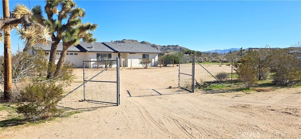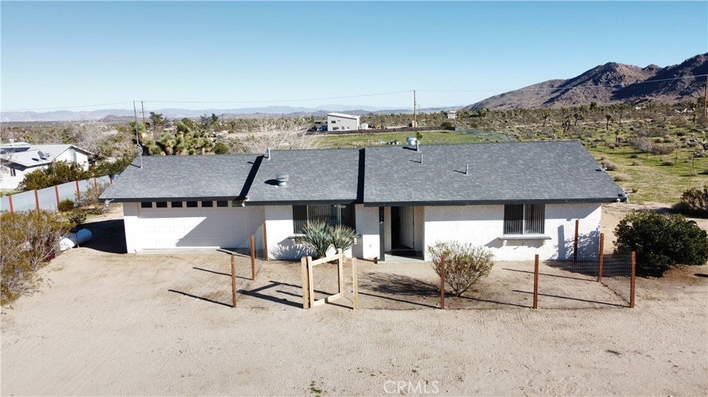 Discover the ultimate turnkey desert retreat! This stunningly remodeled 2-bedroom, 2-bathroom home sits on 1.25 fully fenced acres, offering unparalleled privacy and breathtaking mountain views. No detail was spared in this professional renovation, featuring new flooring, designer paint, double-pane windows, and a newer roof. The open kitchen shines with brand-new appliances, including a refrigerator, stove, dishwasher, and microwave. For maximum comfort, the home features four high-efficiency mini-split systems for zoned A/C and heating. The legal 2-car garage has been meticulously finished with polished floors and completed walls/ceilings; currently used as a spacious 3rd bedroom/Airbnb suite, it offers incredible versatility. Step outside to a large covered patio, perfect for soaking in the desert sunsets. Located in a neighborhood of larger estates, you are just 7 minutes from shopping and dining. This home is being sold COMPLETELY FURNISHED with professional decor—it is truly move-in ready. Just bring your toothbrush and start living the desert dream!
