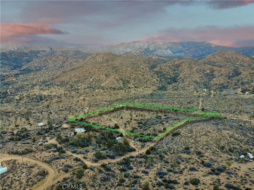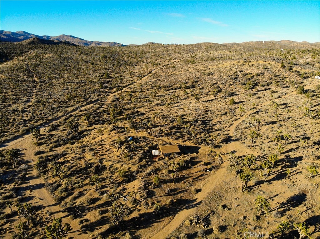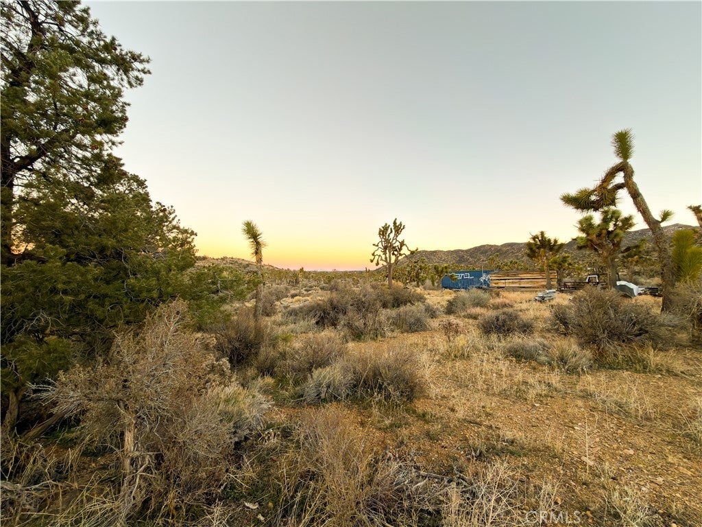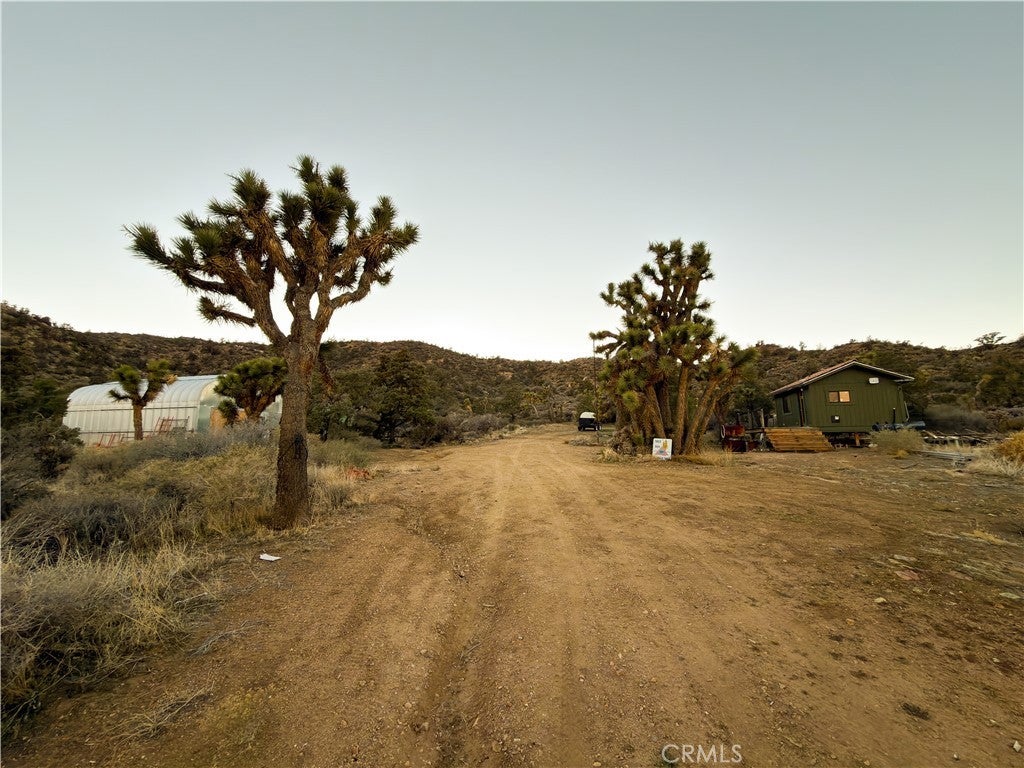 There are 3 remote, super private "Hi Desert" communities, Burns Canyon's "4 corners" is the premier. Quarter-way up the 2N02 route, between Pioneertown an Big Bear and on the verge of San Bernardino National Forest, In the transition zone between High Desert Mojave Biome, ancient Joshua Tree forest and Alpine Biome aromatic Pinion Pine/ Giant juniper forest. This 5 acre land is zoned RC or Resource Conservation or "Recreational" zoning which allows many alternative uses and releases from certain building restrictions. This listing included 3 Parcels straddling 2N02/ Burns Canyon Rd/ Orion Trail, Vista Dr. Including a 20 Acre, 10 Acre, and 5 Acre. The developed lot has a gate, 120 SF homestead cabin with a little kitchen and bathroom. and a 2000 SF Quonset Hut Garage, high end off grid battery system and solar. The 5 Acres is contiguous bordering the main road to the "4 corners" and the 10 acre is inline across the road from the 20 with roads/ driveways bordering the north and south edge and a driveway through the lot and is elevated and sloped with an incredible view. This lot is 15 minute drive to Pappy and Harriet's, 45 minute drive to Big Bear. There is another way out toward Lucern Valley. Live free in back country. A vehicle with 4x4 is recommended but not required to access from the Pioneertown/ Rim Rock direction. GPS 34.234560, -116.639356