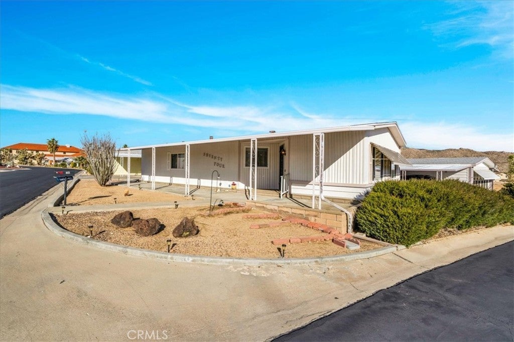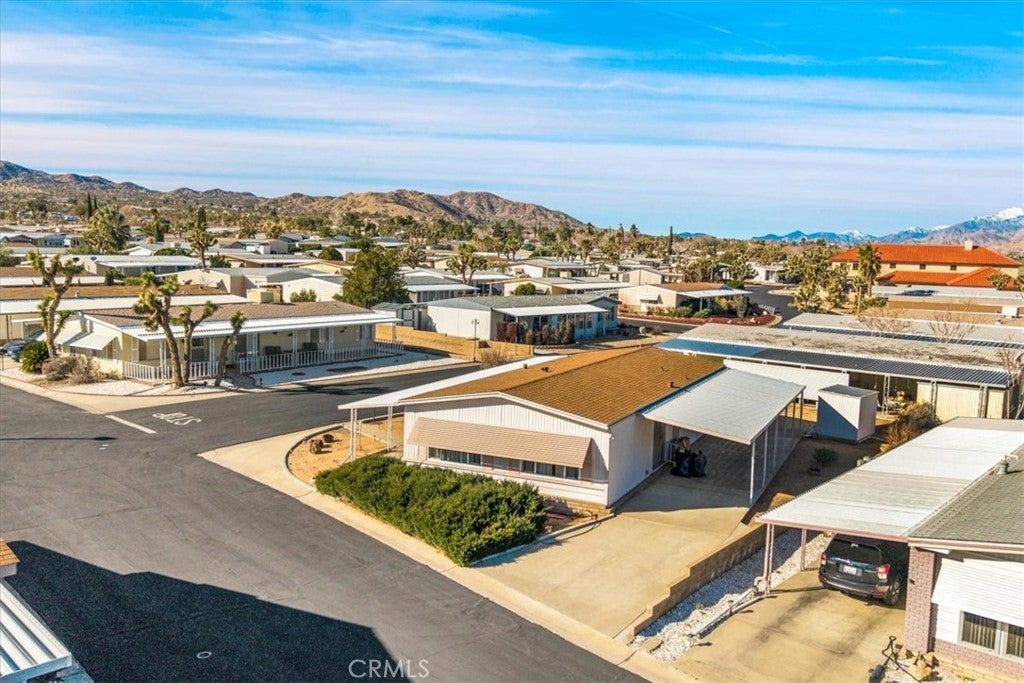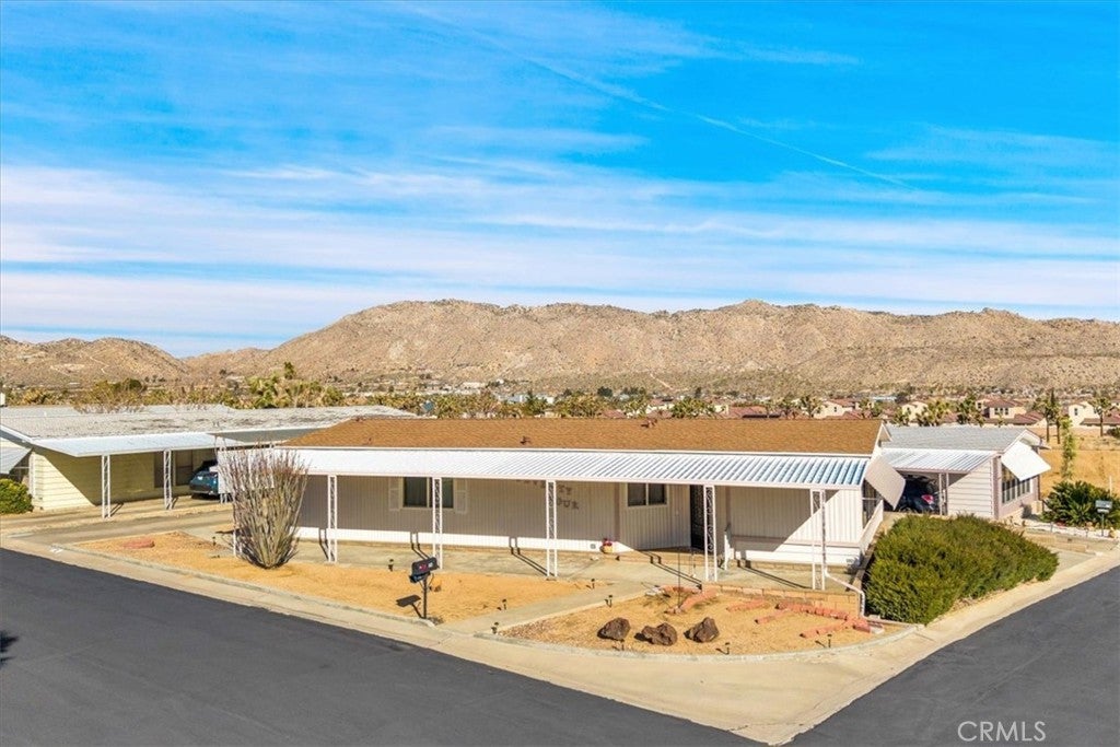 ***BRAND NEW HVAC SYSTEM with 10-YEAR WARRANTY!!** Rare corner lot with breathtaking mountain views, in the highly sought after (55+) Gates of Spain Community of Yucca Valley!! This home features a full wrap-around driveway allowing up to four cars (two under a carport), a bright welcoming 2 bedroom, 2 bath home of 1,248 sqft of living space, energy-efficient double pane windows providing soothing cross breezes and a large, covered patio to enjoy mountain views and stunning sunsets. The spacious living room flows nicely to the dining area and kitchen, which provides ample cabinet and storage space, and a picturesque window above the kitchen sink. In the primary bedroom you'll find a generously sized ensuite bathroom with a soaking tub and large single sink vanity. The charm and serenity of your new desert home is ready for you today! Property highlights: *Brand New HVAC System (NOVEMBER 2025 install, 10-year warranty) *Double paned windows *Indoor laundry room – washer & dryer included *All flooring updated in 2021 *Wrap-around driveway *Private outdoor storage shed *Large, covered patio A bonus to this peaceful desert home is the welcoming atmosphere, community pool, hot tub, and clubhouse, and well-maintained grounds. Call today to schedule your private showing to start living the good life in the High-Desert!