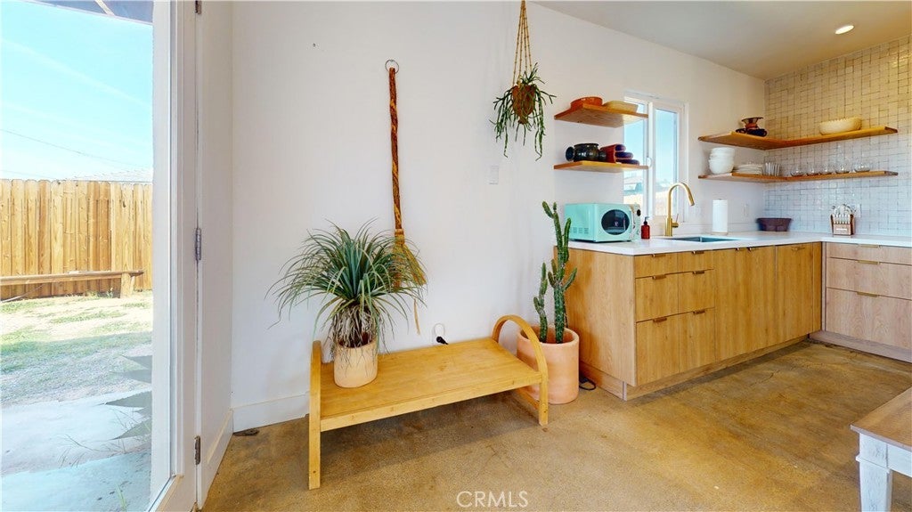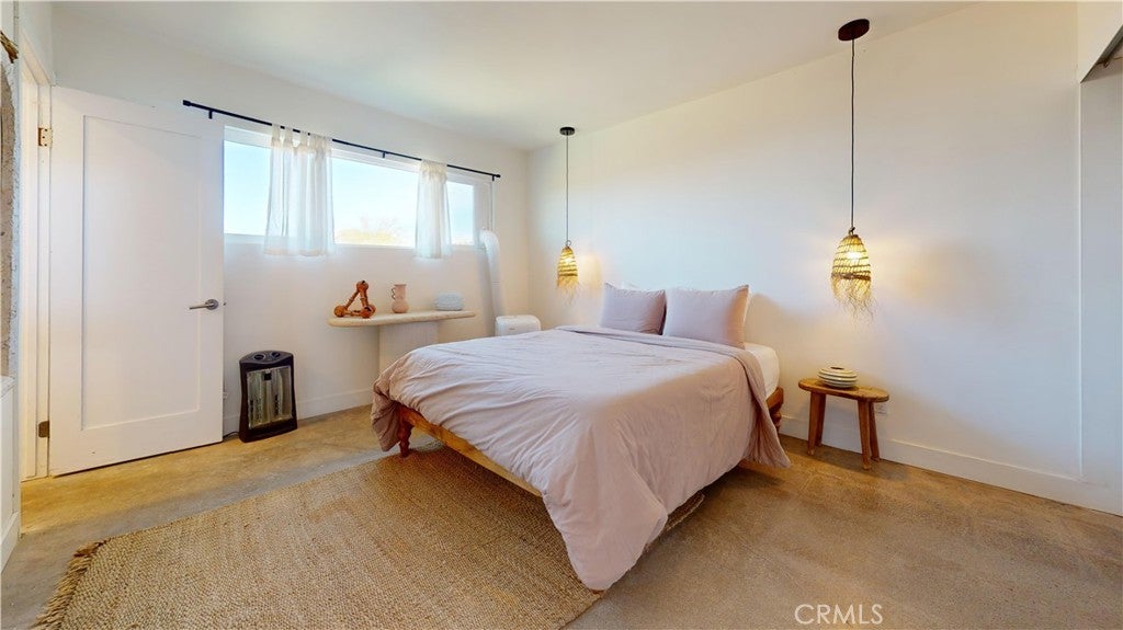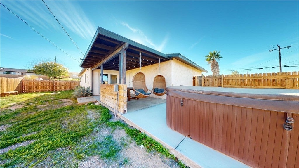 Come see this amazing and Unique 3 bedroom 2 bathroom home in the heart of Joshua Tree. The modern fit and finish of this home is beautifully showcased by tons of natural light from the skylights and windows. Enjoy the fenced back yard with hot tub, swing chairs and patio cover that is illuminated with lights. Open floor plan living room and kitchen give an expansive space to enjoy the home. Just a short distance from everything Joshua Tree has to offer including restaurants, farmers market and stores. Not to mention the National park entrance is just a few minute drive away.