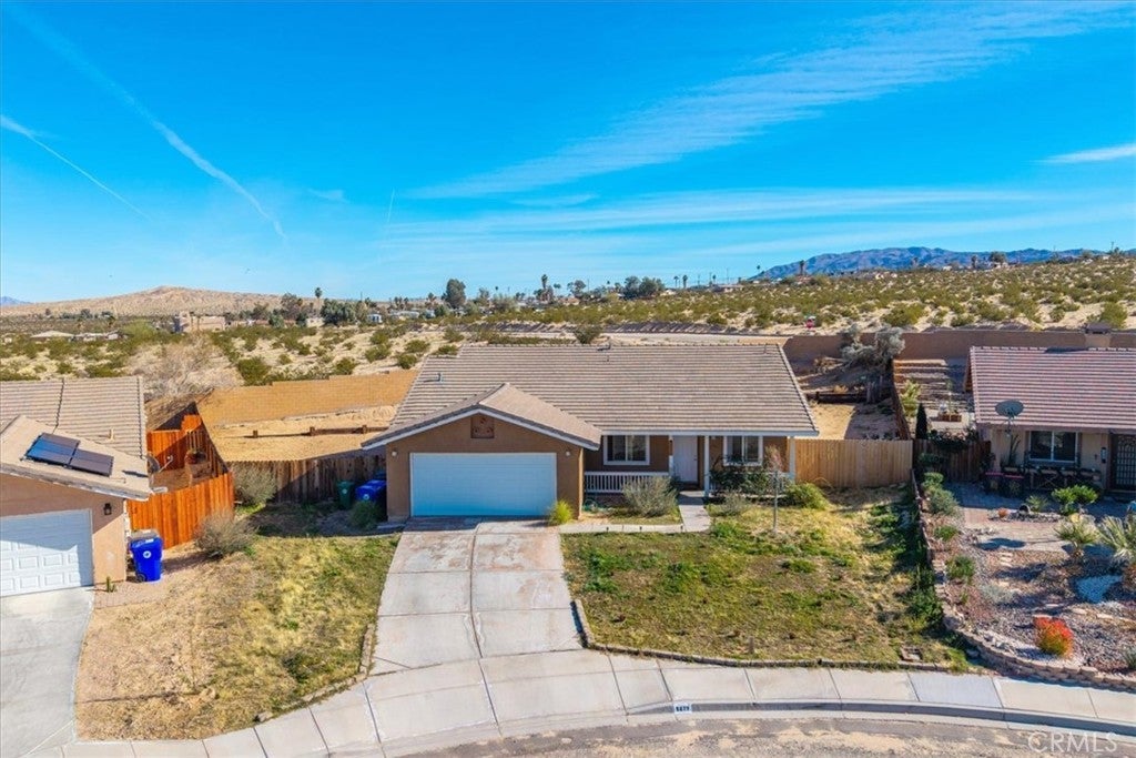 Welcome to Turtlerock! This single-story home offers 3 bedrooms, 2 bathrooms, and a bonus office space with beautiful built ins that can be used as a fourth bedroom. Situated on a corner lot, this gives you a huge backyard space, big enough for a pool, park your RV and even covered patio space for outdoor entertaining! There's a cozy fireplace and more built in shelves in the large living room off the kitchen which gives the space a feeling of the open flow concept. There’s also a separate dining area for entertaining guests. Laundry is located inside your home instead of the garage space, and speaking of garages, there is an oversized attached 2 car garage, accessible from inside the home. All bedrooms are spacious and the primary has its own en-suite bath with soaking tub, separate shower, and walk in closet! Located in the Turtlerock development of Twentynine Palms, it has a very low HOA that includes a professionally managed septic system, and general maintenance of the common areas including the landscaping of the outer perimeter, it is also well know for their covered front porches and a functional floor plan that gives you plenty of living space. Recent updates include interior paint, partial roof replacement, and an updated A/C duct system. Newer light and plumbing fixtures give it a more updated feel as well. And it's all located within minutes to the front entrance to the 29 Palms Marine Corp Base, Joshua Tree National Park, and the up and coming downtown 29 Palms area for shopping and restaurants. Whether this will be your first home, or an investment property, it will be hard to pass up this amazing home!