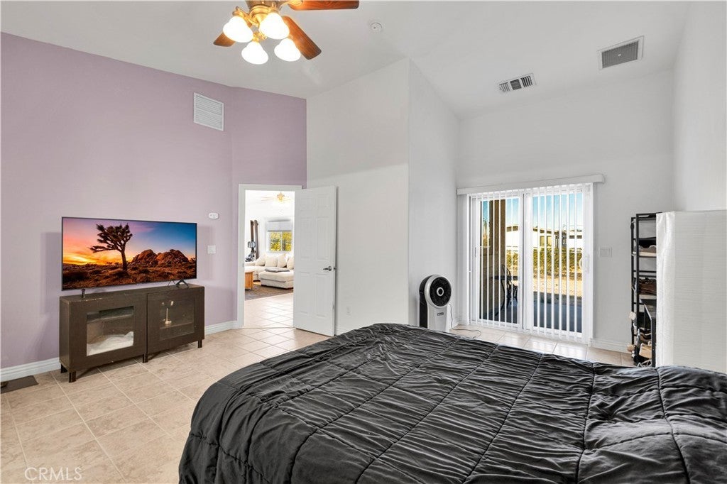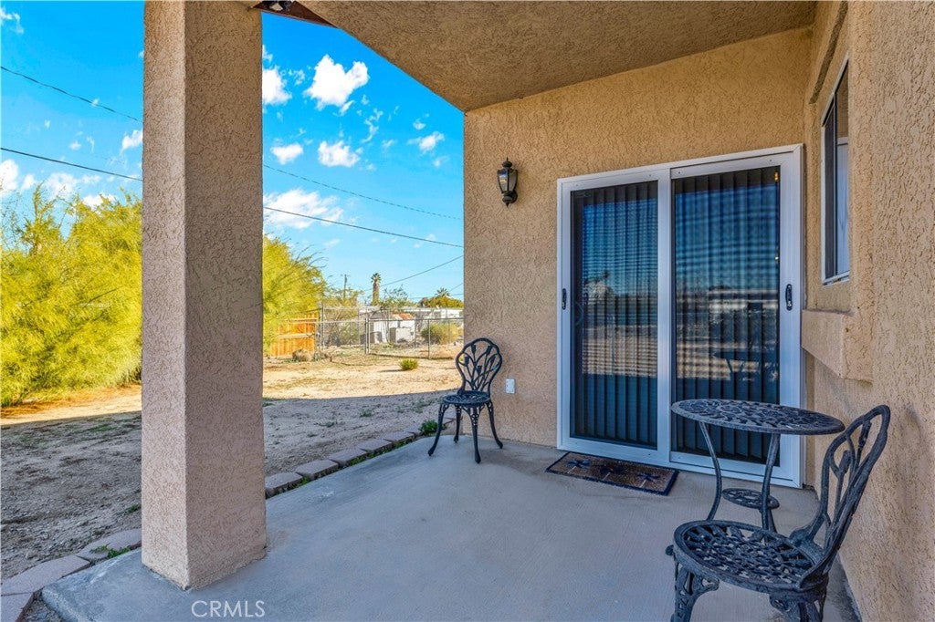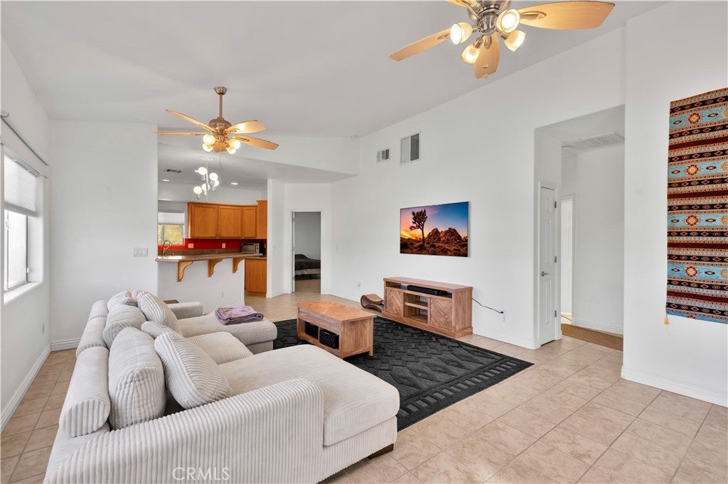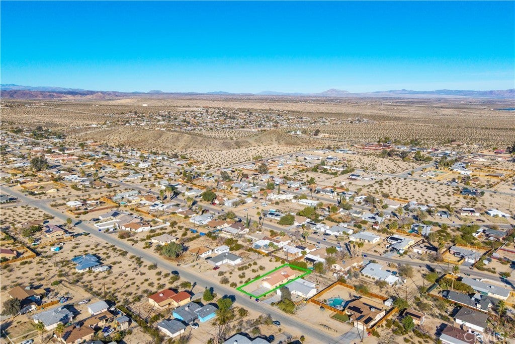 A 29 Palms GEM! Immaculate and move-in ready, this 2006 home checks every box. Featuring natural gas heating and cooking, with all appliances included, this immaculate maintained residence offers a desirable split floor plan for added privacy. The spacious primary suite is situated at the rear of the home and includes a private bathroom and direct patio access. High ceilings enhance the open, airy feel throughout. Dual cooling units provide an efficient and cost-effective air conditioning solution, complemented by ceiling fans in every room. Solid surface flooring runs throughout the home—no carpet. Enjoy abundant storage for a home of this size, plus a finished garage with a window and additional storage space. Ideally located near the high school, local shops and restaurants, with easy access to the Marine Base and Joshua Tree National Park. An amazing opportunity you won’t want to miss.