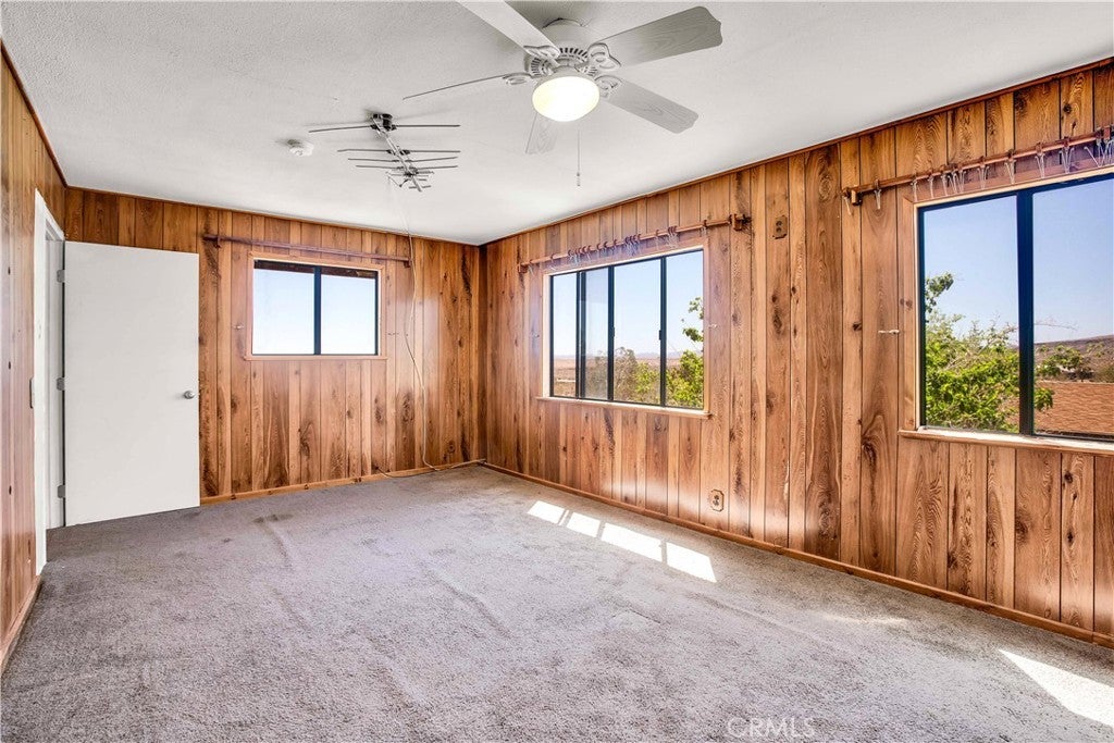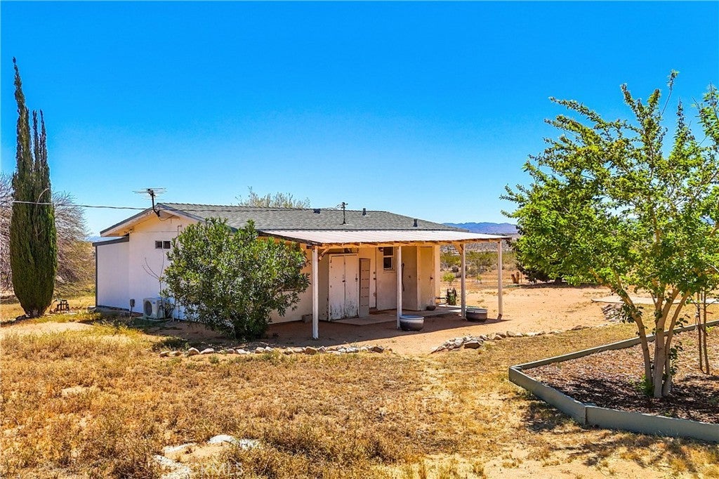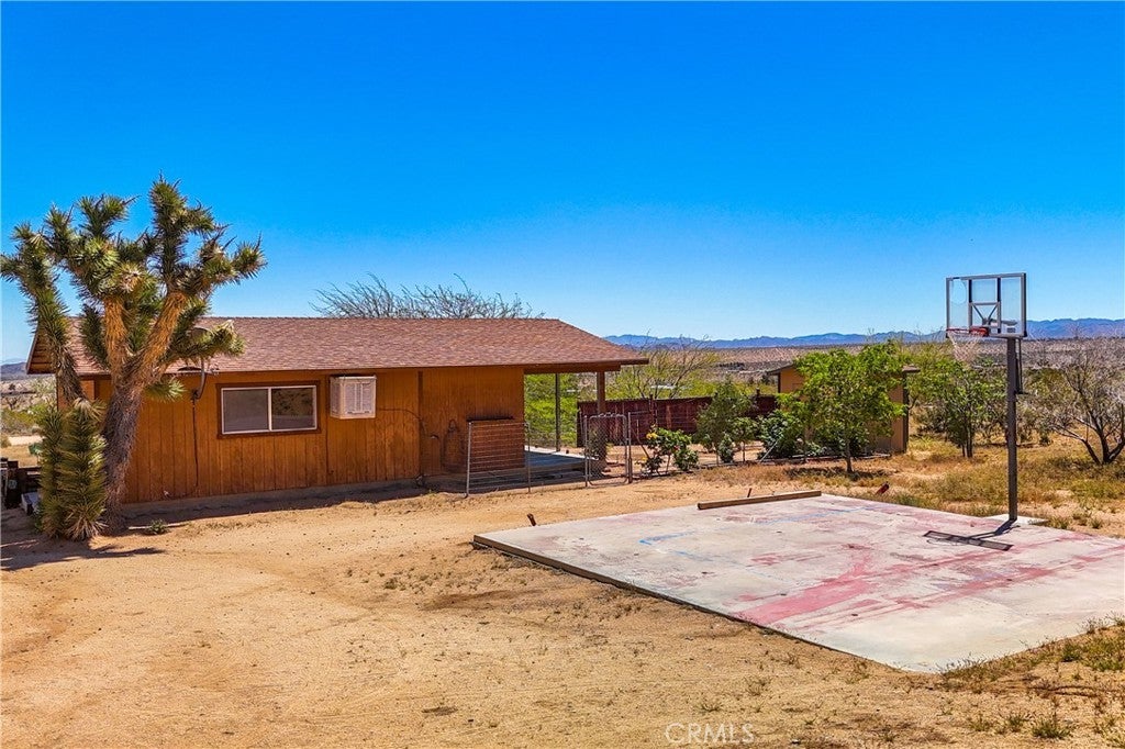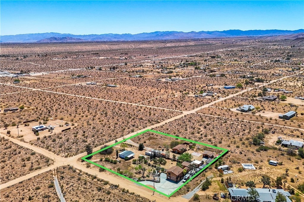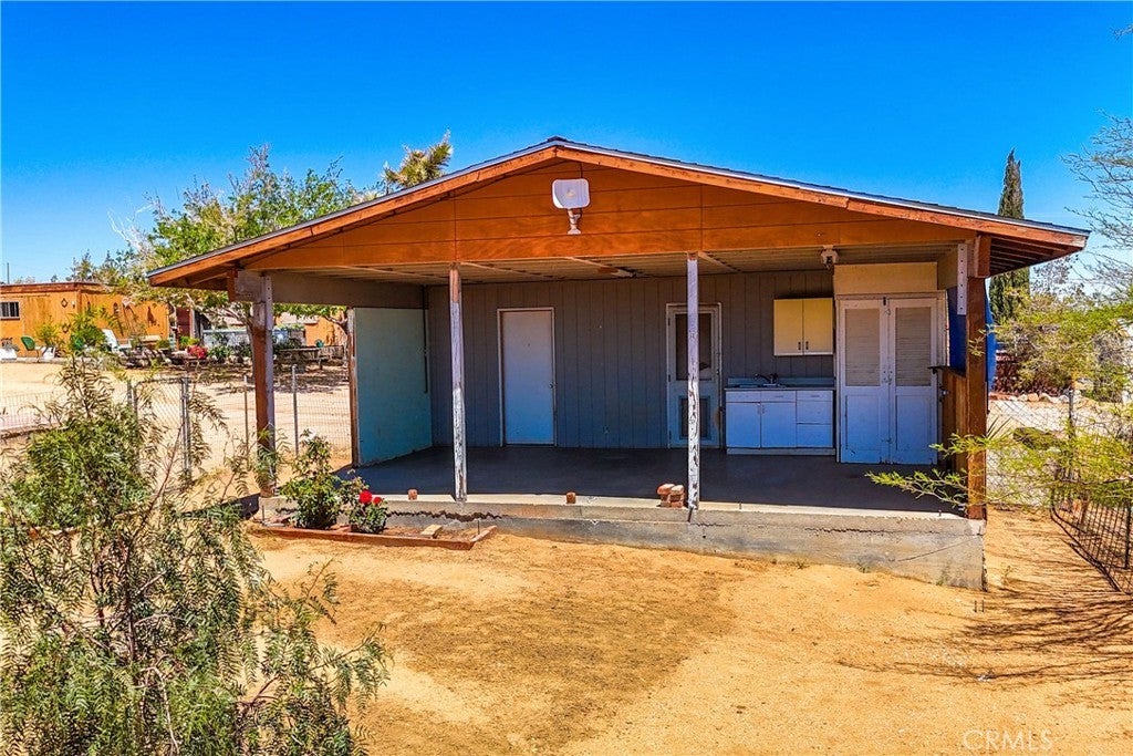 Don't miss out on this very special property. Very affordable multi home sale for investment, extended family or it might make for a great retreat center. Priced to sell and awaiting your personal touches. Sprawling across just over two well groomed acres boasting absolutely gorgeous grounds, tons of infrastructure and really beautiful panoramic views from it's hillside location. Three single family homes, as well as an additional large detached studio used by the properties caretaker, a detached smaller studio used as a gym, a detached garage and a detached laundry room. This property has a bit of everything. There is a genuine midcentury home ready to move into with one bedroom, full bath and enclosed porch. The midcentury home is on it's own utilities with separate meters from the rest of the homes for ease of creating a separate rental if desired. There is a clean studio apartment with exhibition kitchen and full bath, private fenced yard and great entertainers patio with partial outdoor kitchen amenities. The primary home built in 1989 is a 1500 plus square foot rare two story, three bedroom, two full bath fixer with great views from the second floor. The outdoor spaces on the home are amazing with many relaxing sitting areas, mature fruit trees including an orchard, cacti and Joshua Trees, enclosed garden beds, many sheds of various size, chicken coops, enclosed yards for livestock and desirable views of Goat Mountain and Pipes Canyon. The location is just over a 20 minute drive to the main entrance of the Joshua Tree National Park and also shorter distances to Giant Rock, The Integratron and Pioneertown. Come take a look and make this wondrous location yours and live life under the clear desert skies and beautiful dark star filled desert nights.
