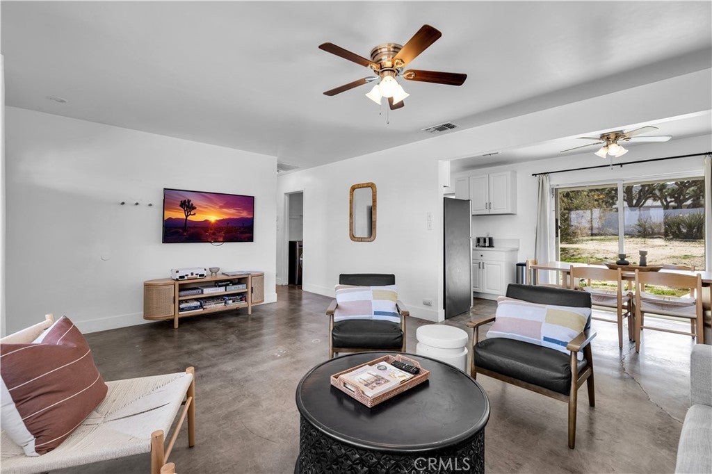 Remodeled 3-Bed, 2-Bath Pool Home in Story Park – Active Short-Term Rental Opportunity Welcome to this beautifully remodeled 3-bedroom, 2-bathroom HEATED POOL home located in the highly desirable Storey Park neighborhood of Yucca Valley. Situated on the higher side of the street, this home offers great presence with a long concrete driveway leading to the attached two-car garage. As you step inside, you’ll immediately notice the polished concrete floors that flow throughout, creating a sleek and modern foundation. The home is light, bright, and airy, with natural light pouring in from the many windows. The recently remodeled kitchen features newer cabinetry, quartz countertops, stainless steel appliances, and plenty of storage and counter space. The open floor plan connects the kitchen, dining, and large living room, which provides direct access to the backyard through a sliding glass door. Step outside to your private desert oasis, where you'll find a stunning in-ground Pebble Tec pool featuring a heated cabo bench and elegant waterfall accents—all just a few years old. The corrugated steel privacy fencing surrounds the yard, providing seclusion while the natural desert landscaping adds beauty and low-maintenance charm. Back inside, the home features a dedicated indoor laundry room with utility sink and direct access to the backyard. All three bedrooms are generously sized with plenty of closet space. The first bathroom includes a walk-in tiled shower, and the second bathroom offers a shower-tub combo. This home is currently operating as an active short-term rental, making it an ideal opportunity for investors or buyers looking for a move-in-ready primary residence or weekend retreat. Pool homes in Story Park at this price point are incredibly rare—schedule your private showing today before it’s gone!