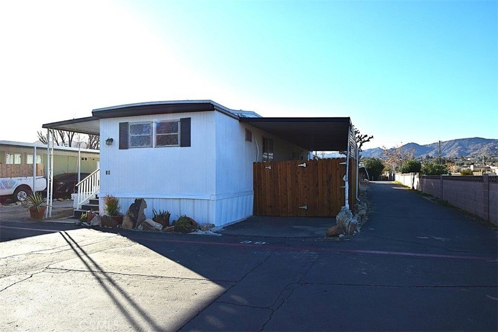 Beautifully Updated Single-Wide in Joshua Tree Senior Community! Welcome to this charming 2-bedroom, 1.5-bathand a bonus extension area , single wide mobile home located in the desirable Lazy H Manufactured Home Community, a 55+ senior park, in Joshua Tree. The home features new flooring and fresh interior paint, offering a clean, bright, and move-in-ready space. Situated on a corner lot, it provides extra privacy and outdoor space, along with two sheds for added storage. Enjoy peaceful desert living in a friendly senior community close to shopping, dining, and Joshua Tree National Park. Don’t miss this great opportunity!