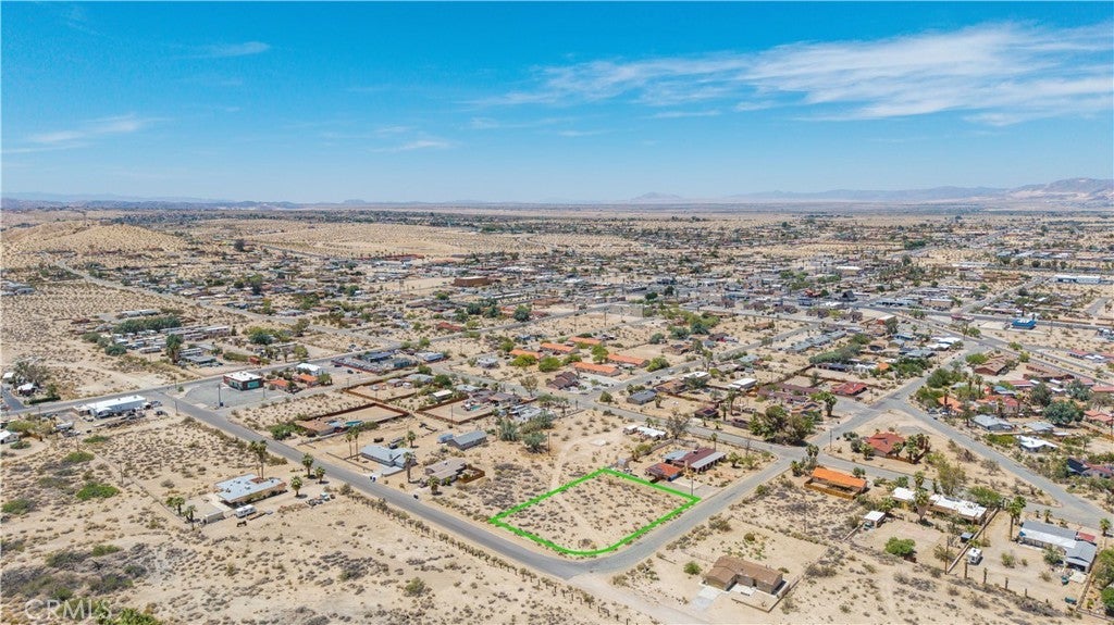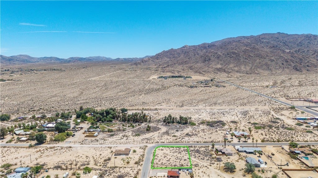 Scenic corner lot in the heart of 29 Palms! This 0.6-acre parcel features a paid water meter and seller states it's connected to city power. Located directly across from the iconic 29 Palms Inn, you'll enjoy sweeping desert views and a prime spot just minutes from the entrance to Joshua Tree National Park. Whether you're looking to build a desert getaway or invest in a fast-growing area, this lot offers location, utility access, and natural beauty.