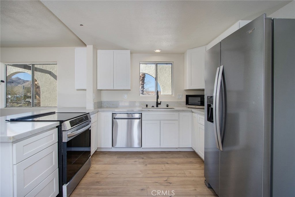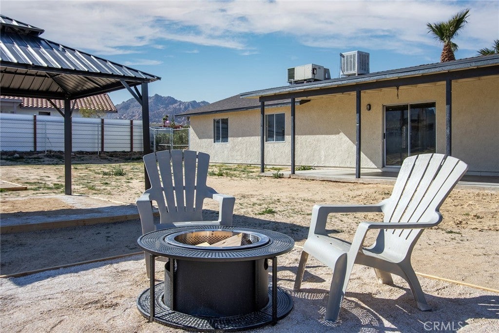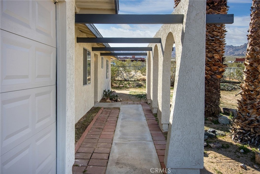 WALK INTO JOSHUA TREE NATIONAL PARK! This beautiful Spanish ranch-style home sits near the top of the hill on a quiet street just steps from the iconic Indian Cove area of Joshua Tree National Park. Enjoy scenic valley views with dramatic rocky hills rising above. Inside, you’ll find a bright open floor plan with a remodeled kitchen with stainless steel appliances, new refrigerator, all new flooring throughout, and central HVAC for year-round comfort. Both bathrooms have been remodeled, including a stunning primary en-suite featuring a floor-to-ceiling tiled walk-in shower, new vanity, and thoughtfully curated finishes. The spacious backyard offers plenty of room for entertaining, relaxing under the desert sky, or potentially adding a pool (buyer to verify). With its unbeatable location, thoughtful upgrades, and close connection to nature, this home is an exceptional opportunity to experience true desert living. Located in one of 29 Palms’ premier neighborhoods, the home is situated equidistant from downtown Joshua Tree and downtown 29 Palms, offering convenient access to dining, shopping, arts, and endless outdoor adventure. This one will go fast... book your appointment NOW to see this gem.