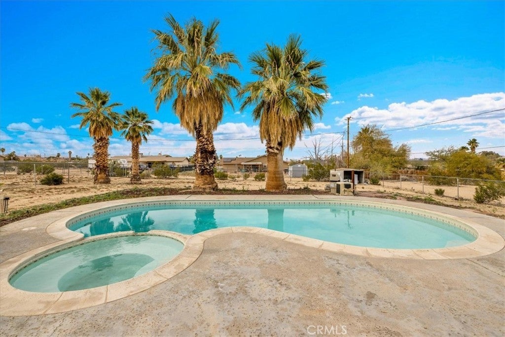 Welcome to your private desert oasis in Twentynine Palms. This beautifully appointed 4-bedroom residence offers comfort, style, and effortless living in a serene setting. Thoughtfully upgraded, the home features a remodeled kitchen, updated bathrooms, newer flooring, and a recently installed A/C system—creating a move-in-ready experience with modern appeal. Step outside to your resort-style backyard and enjoy summer days by the sparkling pool, complete with a new motor and heater—ideal for both relaxation and entertaining. Set on nearly half an acre, the expansive grounds provide privacy, space, and a front-row seat to breathtaking desert sunrises and unforgettable star-filled nights. Perfectly located near the Marine Corps Base, Joshua Tree National Park, and within easy reach of Palm Springs and Big Bear, this home offers the rare combination of luxury, convenience, and natural beauty. At approximately 1,500 square feet, this exceptional property delivers refined desert living at its finest.