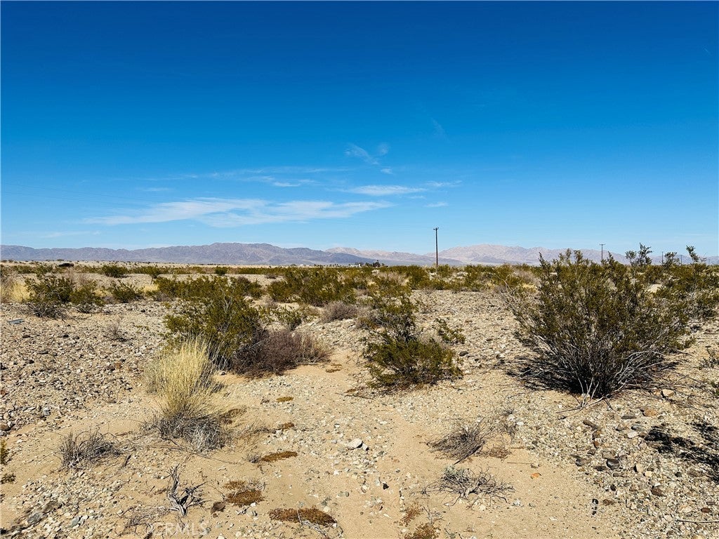 Spectacular 5 acres South of the Highway! Set back in unique rolling terrain providing sought after solitude. Remnants of a recreational cabin. Epic views of desert mountains. Camp under the stars! Power lines adjacent, good access to the property by dirt roads. Sullivan Rd crosses through the property. 15 minutes to the Joshua Tree National Park entrance in 29 Palms. Owner May Carry! The property does not have an assigned address - for listing purposes only. GPS: (34.1279568, -115.9376629) APN: 0625-141-08-0000