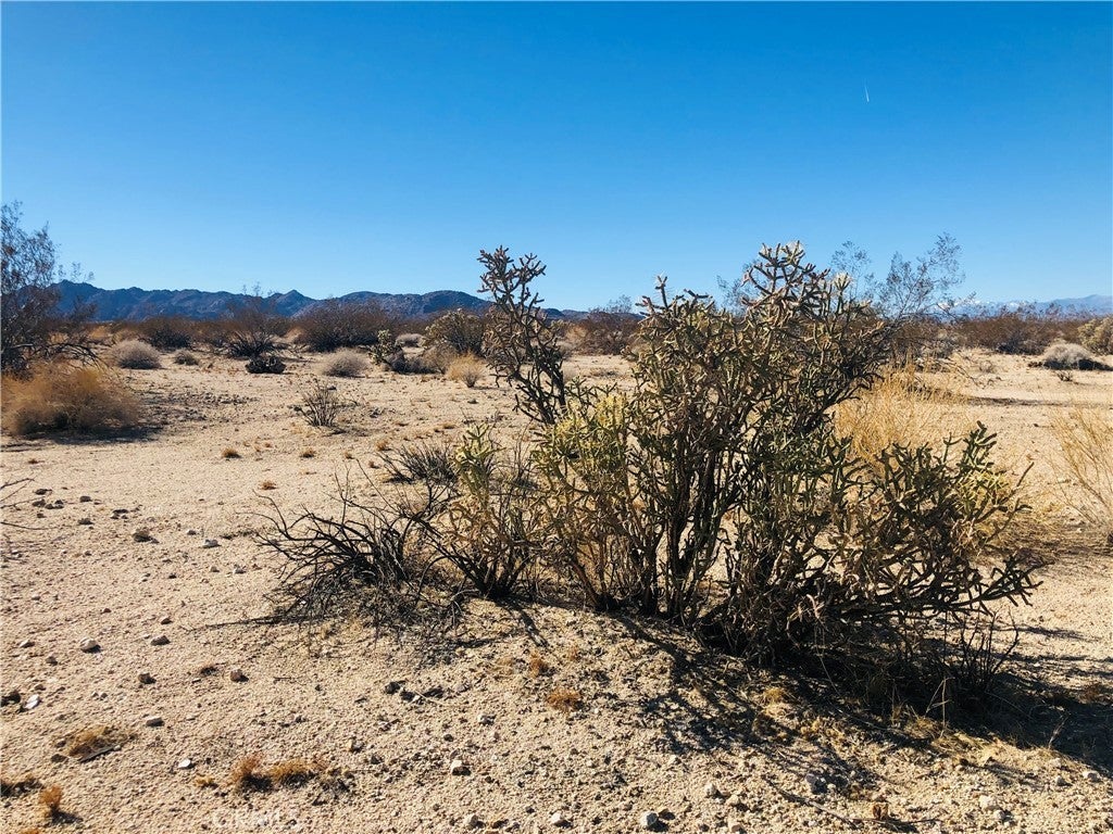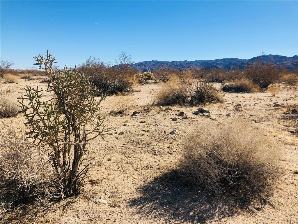 Secluded 5 acres with fantastic views across miles of desert to rocky hills and snow-capped mountains in the distance. Cholla and other cacti scattered throughout. No utilities or direct access by road. Property does not have an assigned address - for listing purposes only. GPS: (34.1448754, -116.1382362) APN: 0613-232-20-0000. Owner May Carry.