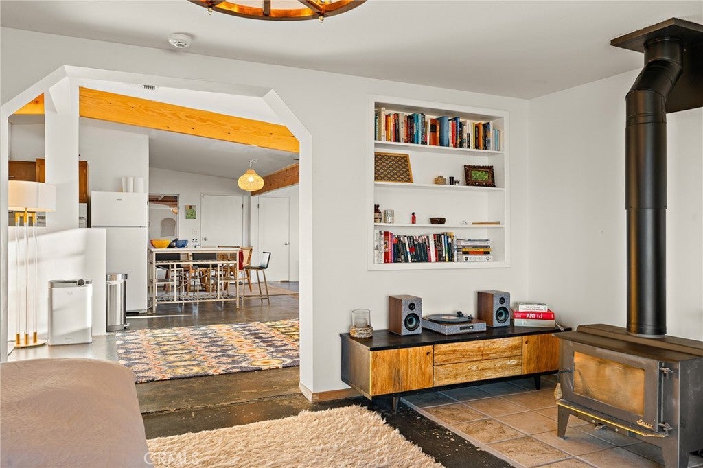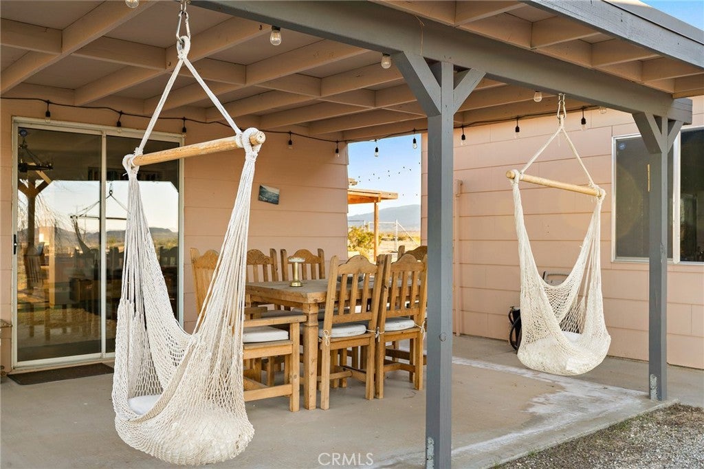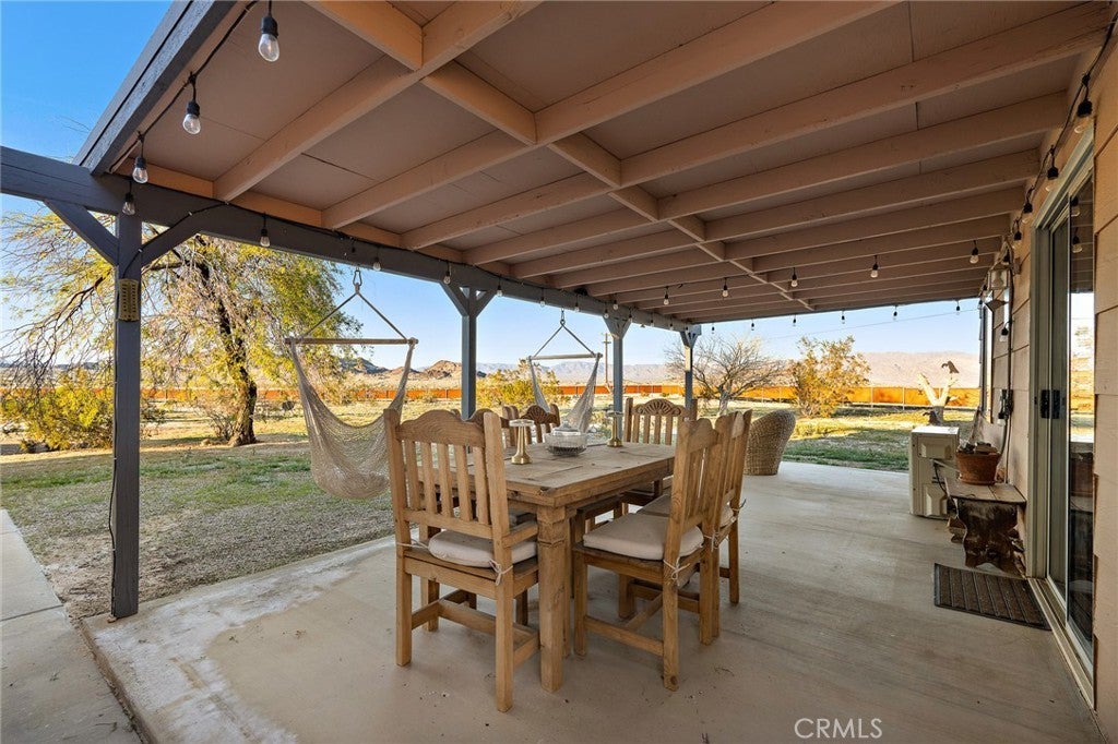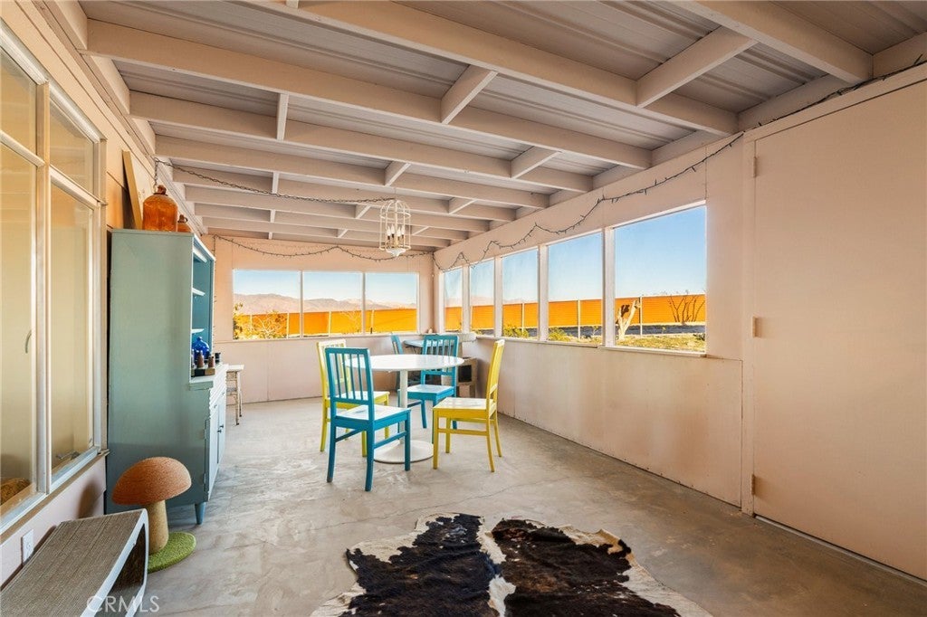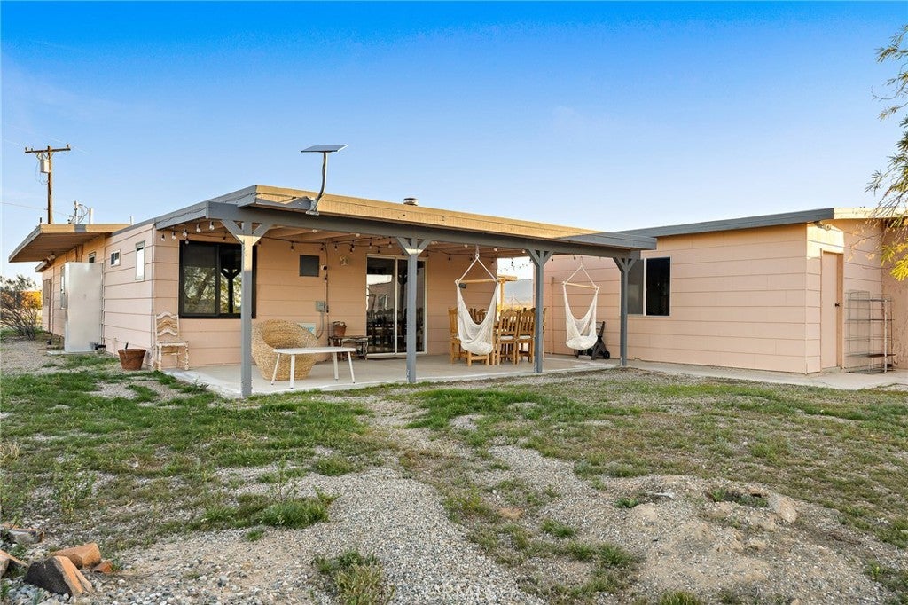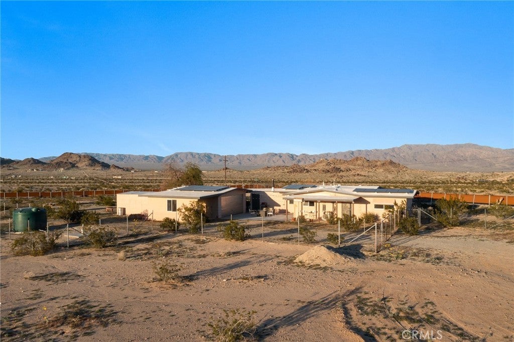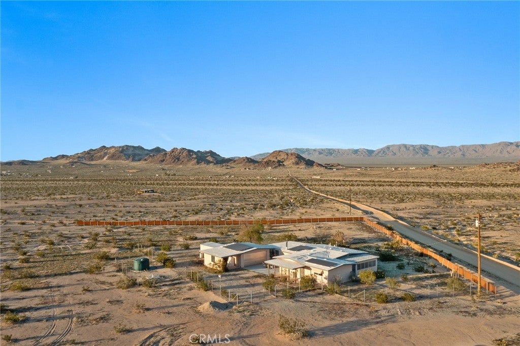 Priced for a quick sale!! Perched on 5 scenic acres in Wonder Valley and facing the iconic Godwin Mountains, this approximately 1,400 square foot 2-bedroom, 1-bath home offers space, privacy, and exceptional value—truly one of the best deals in the area. Inside, a second living room functions as a flexible primary bedroom retreat complete with a cozy fireplace, while two additional spacious bedrooms, a huge living room, generous dining area, and a well-appointed kitchen provide comfortable everyday living. A structural beam installation has opened the main living space into an inviting open-plan layout, and mini-split systems are installed throughout the home for efficient year-round comfort. Recent upgrades include a large, fully renovated bathroom spanning the length of the home, completed electrical work above the ceiling, a new exterior water heater to create more interior space, and a new well-water filtration system, with a reverse osmosis system included and ready for connection. Outdoors, enjoy perimeter fencing for privacy from passing headlights, removed interior fencing to enhance property flow, a concrete patio near the two-car garage, front and back porches, a relaxing hot tub, and serene landscaping that creates a peaceful, balanced desert setting.
