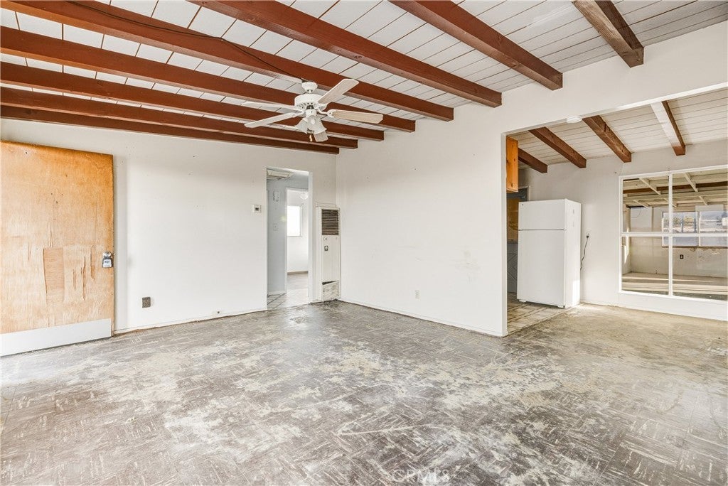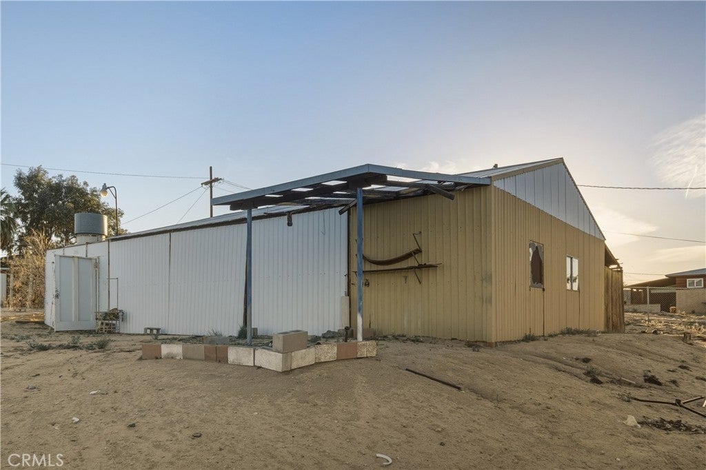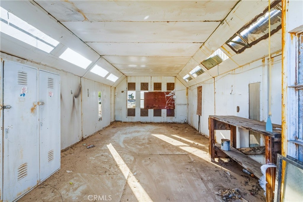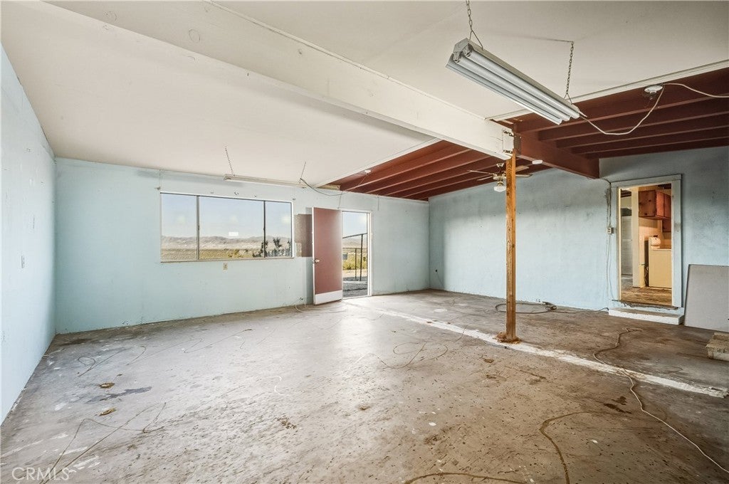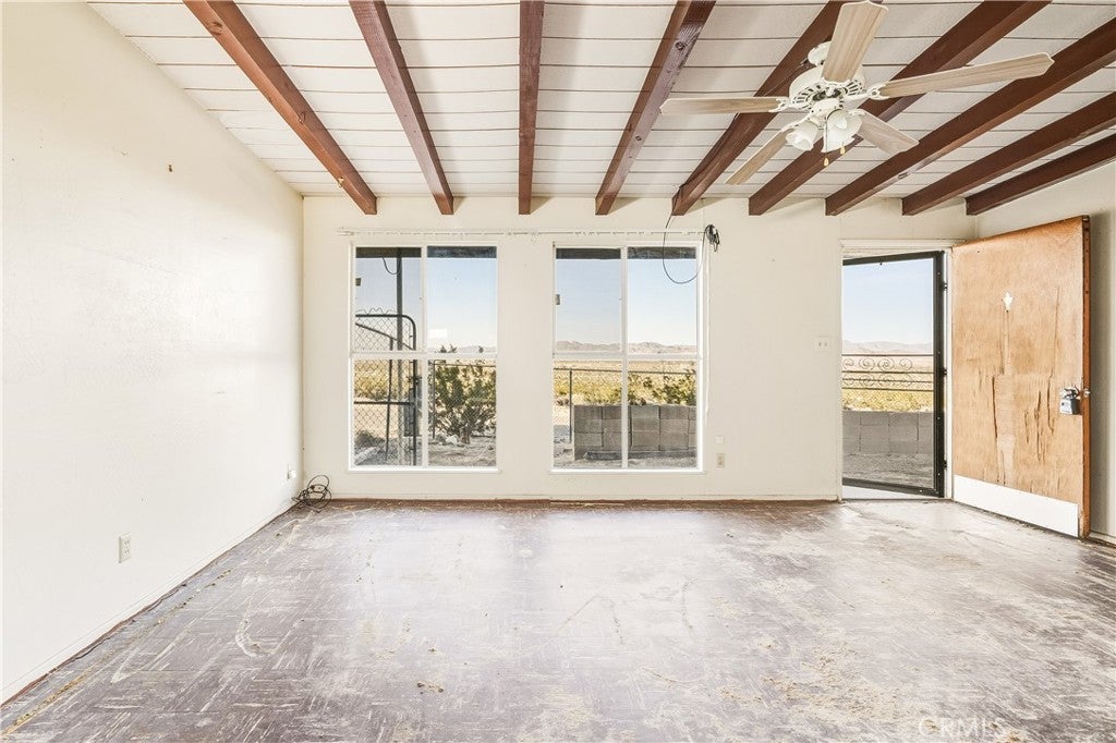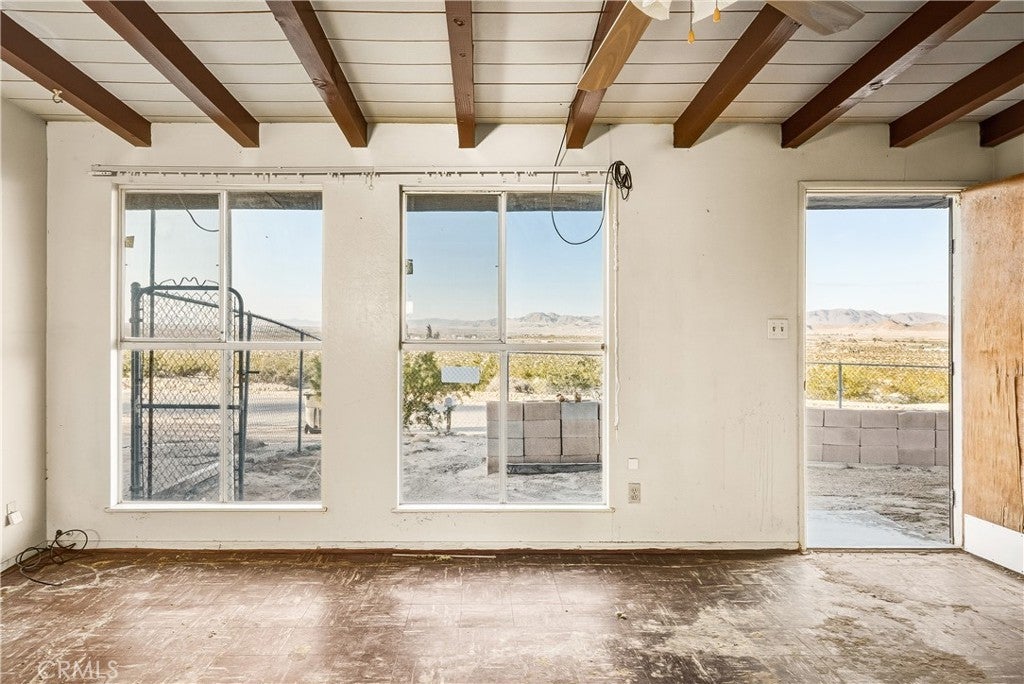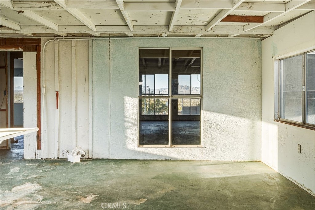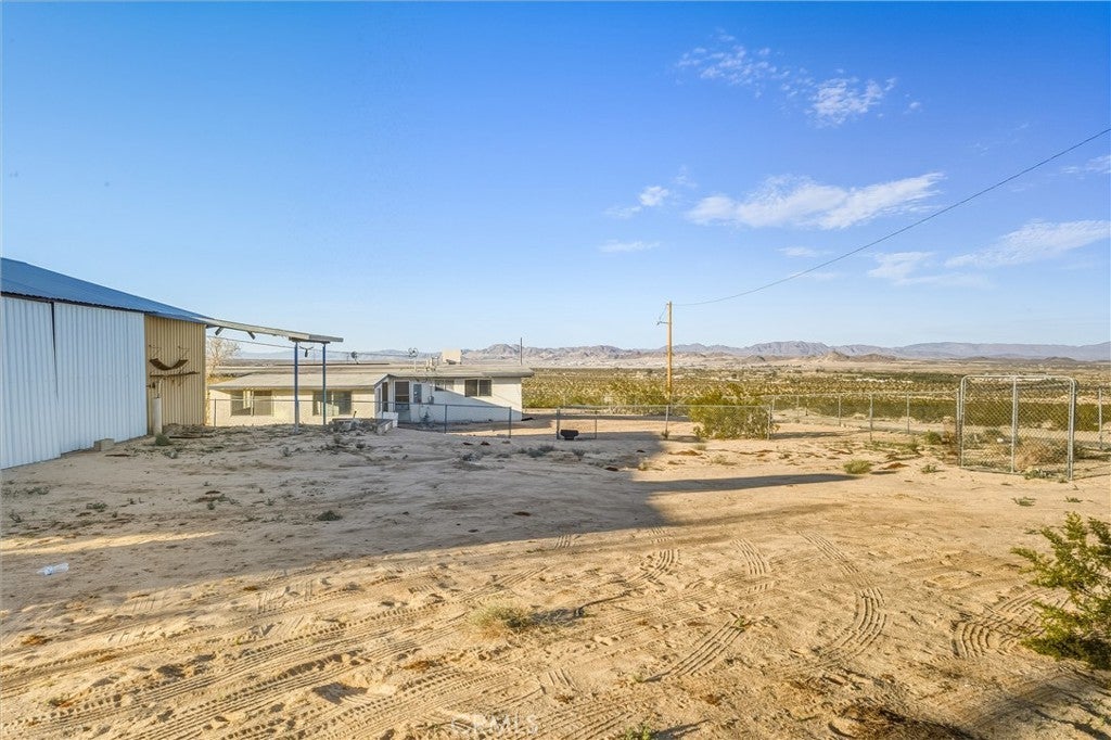 Welcome to 73079 Siesta Ave! This two bedroom, one bath fixer is awaiting your personal touch to be something very beautiful and special. Tons of interior space to work with. The main home may even be split into a duplex if a bathroom and kitchen were added to the western part of the home as there are two front doors already. That is how much space there is to play with. There is also a very large workshop with water and power and bathroom on the back of the parcel. Priced to sell this home boasts tremendous views and desert serenity and is close to all Twentynnine Palms and the high desert has to offer. The midcentury features like the exposed beam ceilings and symmetrically placed windows are begging to be utilized in your design plans. There is leased solar on the home as well. The back of the home appears to be an enclosed porch with a door to the backyard. The enclosure is just bonus space to be used for whatever entertains your needs. The home is located only 7 miles away from the entrance to Joshua Tree National Park and also is 7 miles to the 29 Palms Marine base. Twentynine Palms is rapidly growing in popularity and features a new city center called Freedom Plaza which hosts city events, a weekly farmers market and a cultural museum. Parks and schools are nearby as well as the cities downtown and it's eclectic restaurants and shops. Come make this your home or possibly rental income property.