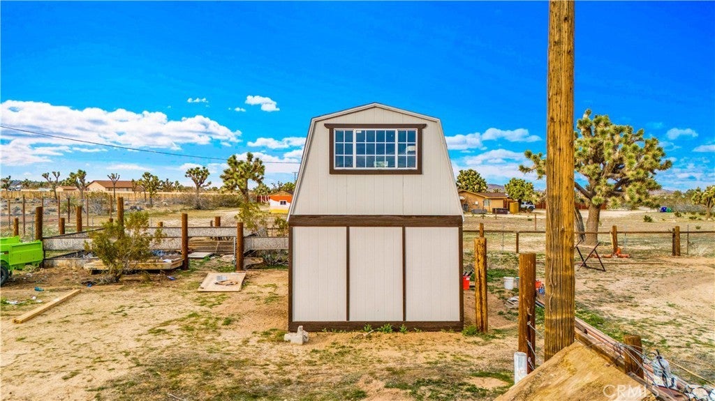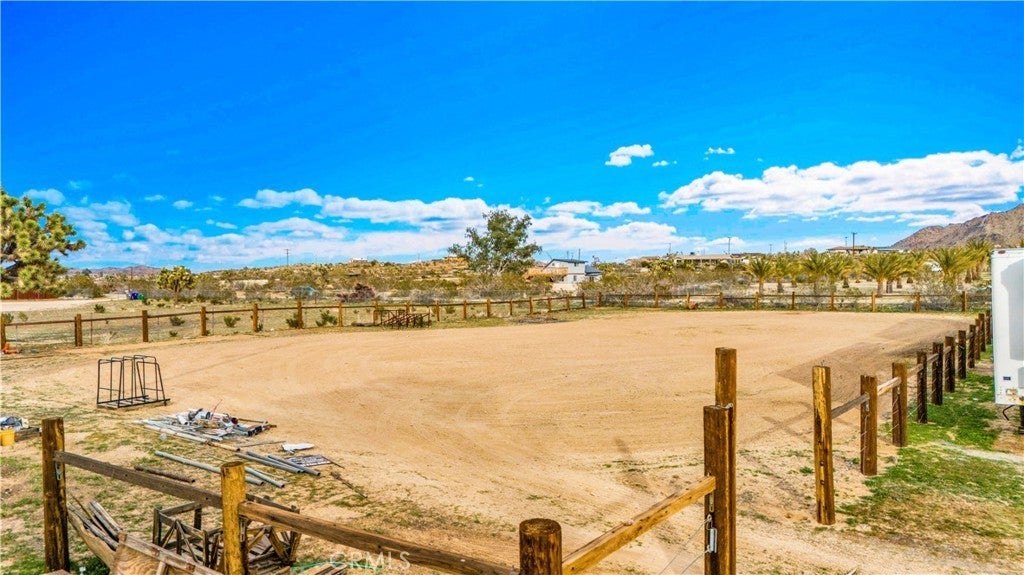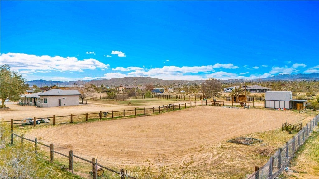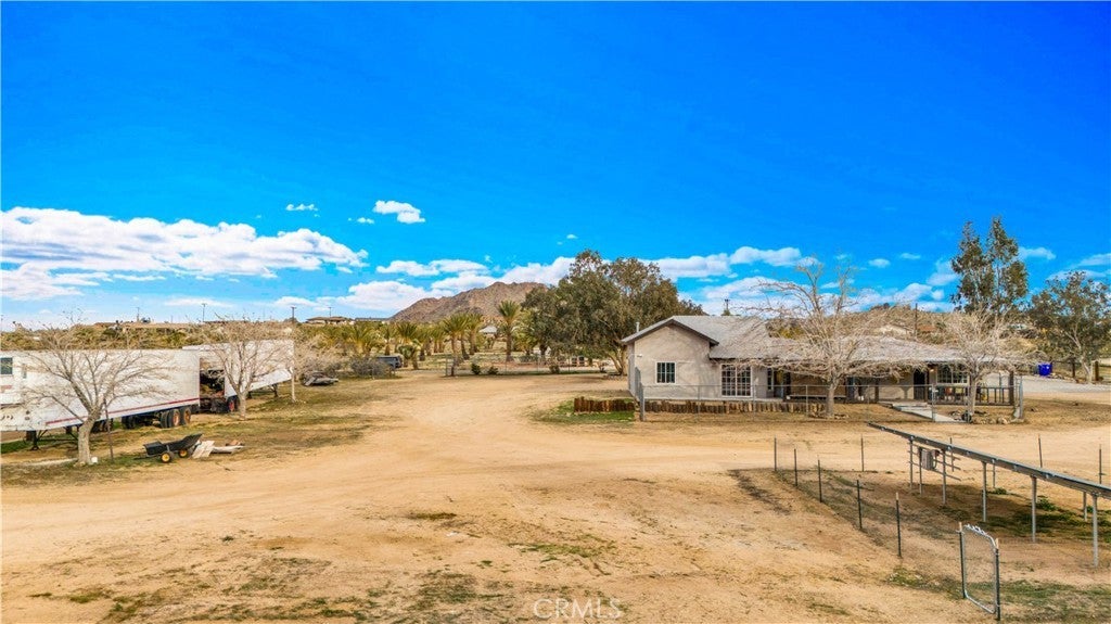 Welcome to your high-desert dream retreat in rural Yucca Valley. Set on over 2 fully usable acres, this beautifully remodeled 5-bedroom home offers the perfect blend of space, comfort, and country living—ideal for a hobby farm, equestrian setup, or private desert escape. The property features multiple outbuildings, including a 4-stall horse barn and riding arena and training ring, providing exceptional versatility for animals, equipment, or creative pursuits. Inside, the home has been thoughtfully updated with fresh interior and exterior paint and brand-new carpet throughout. The remodeled kitchen is a standout, boasting beautiful cabinetry, a brand new fridge, double ovens, and a 6-burner stove—perfect for entertaining or everyday living. Additional upgrades include solar panels, a newer A/C unit, and modern finishes that make this home move-in ready. Bonus attic storage of approx 400 sq ft with pull-down stairs access. Enjoy wide-open skies, peaceful surroundings, and room to grow—just minutes from town, yet worlds away. This is desert living at its best. Furnishings optional.