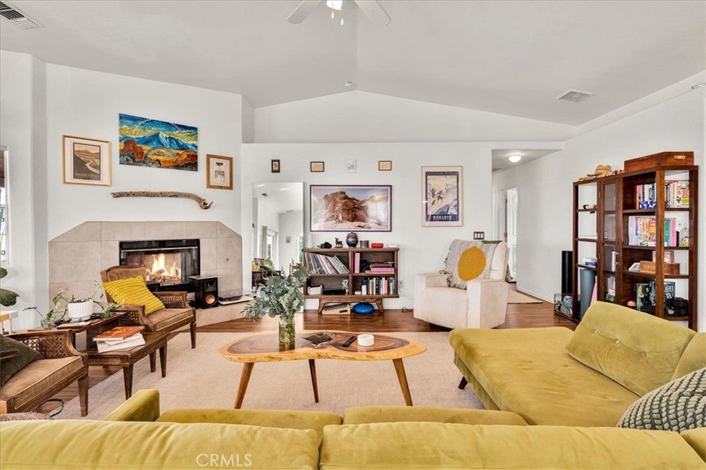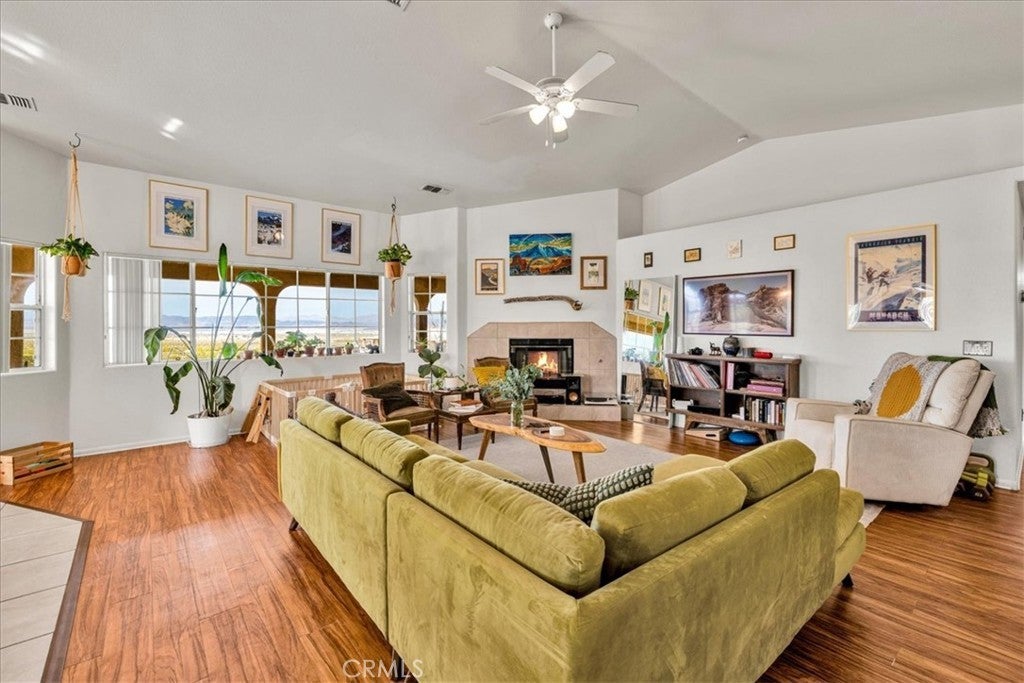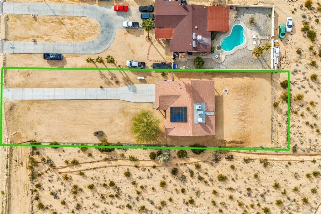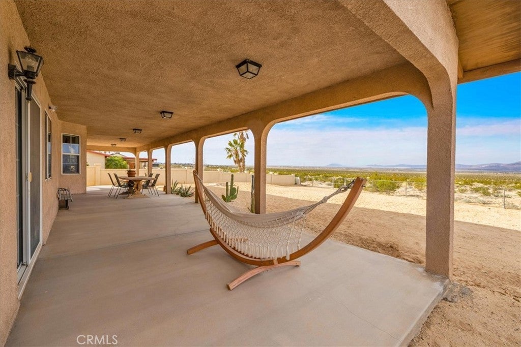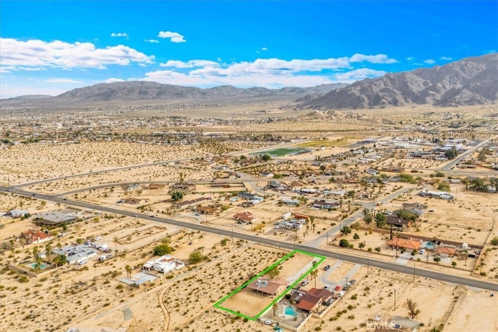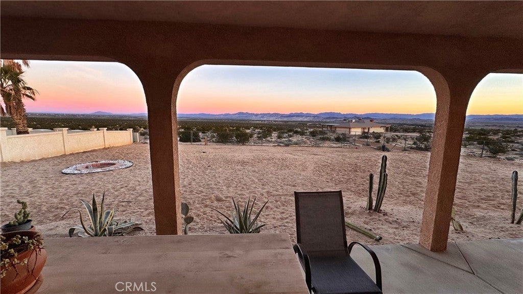 Welcome to 72962 Two Mile Rd, a beautifully-maintained 3 bed/2bath desert home nicely situated on just over a half acre of land with PAID SOLAR and Tesla Powerwall, stunning mountain views, and numerous upgrades throughout. The home itself is set back on the property with a long, inviting driveway and a nicely-landscaped yard with native plants. As you step inside the lovely open-concept living space, you’ll find warm wood-like laminate flooring, high-ceilings, a cozy gas fireplace, as well as several large, north-facing windows that let in an abundance of natural light throughout the day. The living room flows effortlessly into the dining and kitchen space, which boasts an oversized island with bar seating, new stainless steel appliances, a new seven-stage reverse osmosis water filtration system, earth-toned tile flooring, and ample cabinet and counter space. The dining area features a sliding glass door overlooking the mountain range to the north. The spacious primary bedroom features an ensuite bathroom, walk-in closet, and a sliding glass door leading to the back patio. All bedrooms include ceiling fans and picture windows; both bathrooms have single-sink vanities with shower/tub combos. Additional notable features include dual cooling, 1 GB fiber internet, new energy efficient washer, tile roof, and an indoor/outdoor SimpliSafe security system with smart fire & CO2 sensors. The property also features an attached 2-car garage with a new tankless water heater, and level 2 Tesla EV Charger! Outside you'll be delighted to find a fully-fenced yard with a gate that opens to the desert, offering dirt roads for nature walks, a beautiful north-facing covered patio that runs along the full length of the home, and plenty of space to entertain or relax around a firepit on a starry desert night. Located conveniently close to downtown 29 Palms, schools, eateries, the Marine Corps base, Joshua Tree National Park & more. All that's missing is YOU! Come take a look and let this home's charming allure do the rest, your new desert sanctuary or weekend retreat awaits.