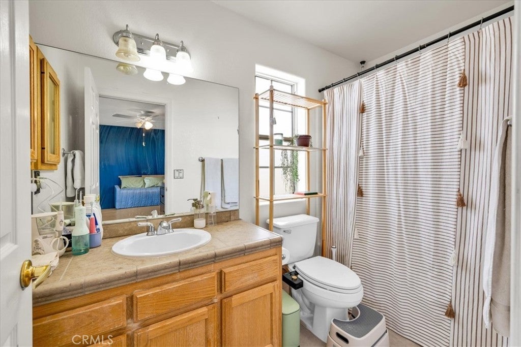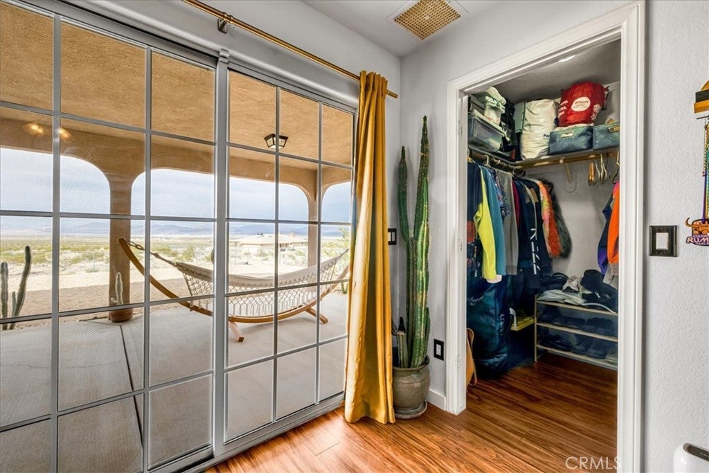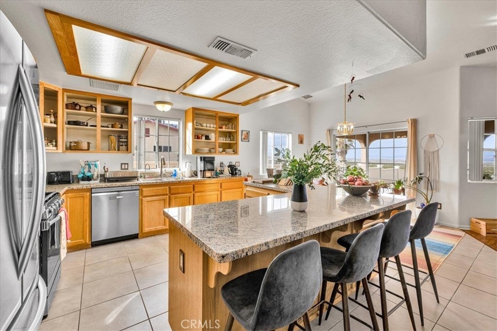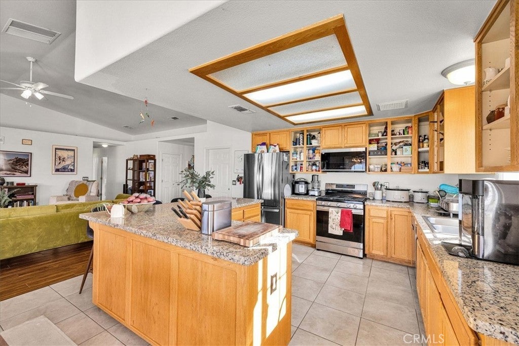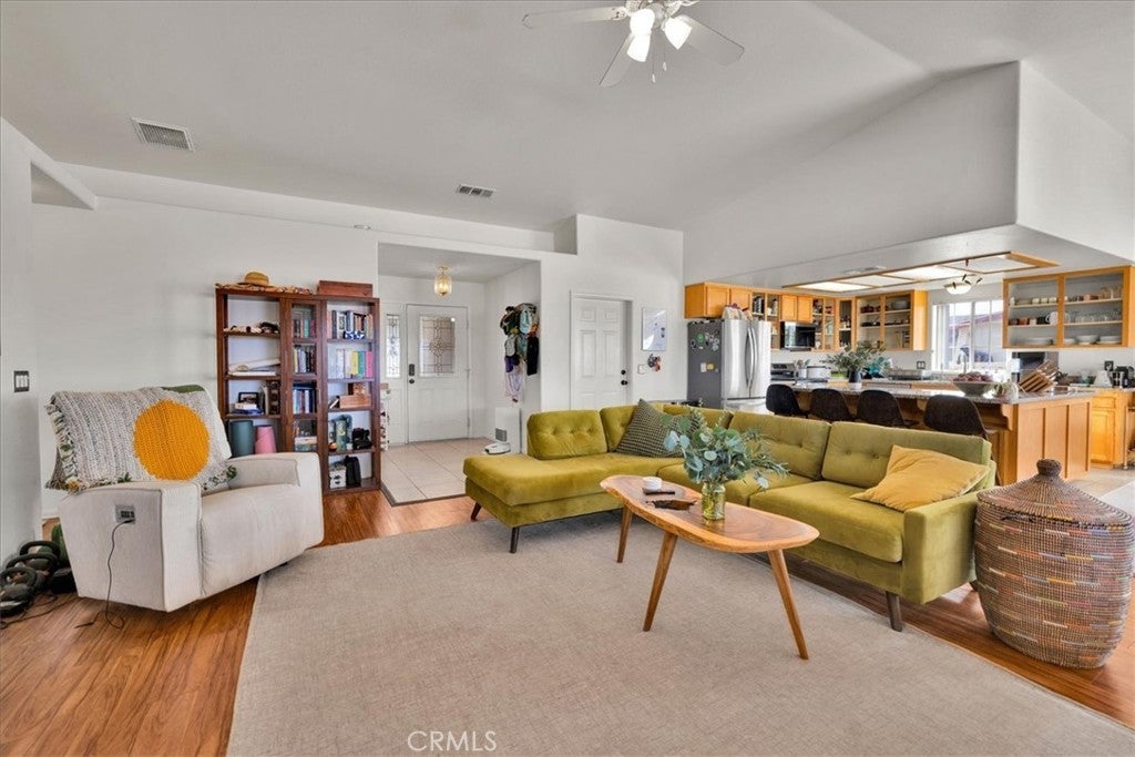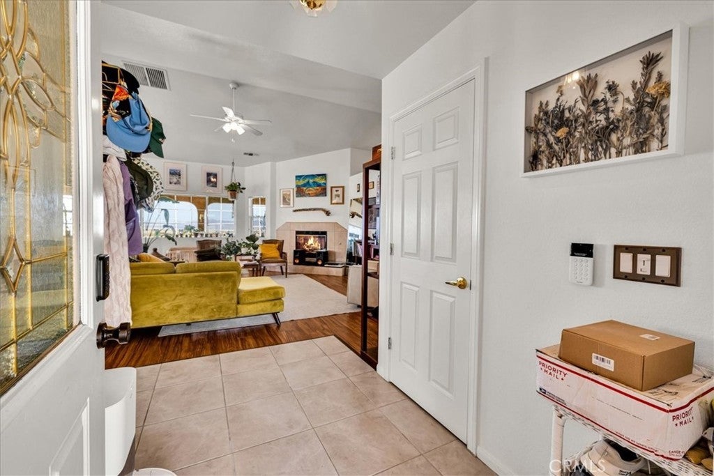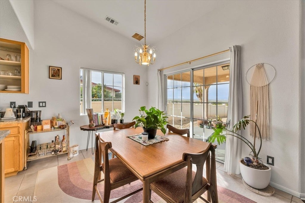 Welcome to 72962 Two Mile Rd, a beautifully-maintained 3 bed/2bath desert home nicely situated on just over a half acre of land with PAID SOLAR and Tesla Powerwall, stunning mountain views, and numerous upgrades throughout. The home itself is set back on the property with a long, inviting driveway and a nicely-landscaped yard with native plants. As you step inside the lovely open-concept living space, you’ll find warm wood-like laminate flooring, high-ceilings, a cozy gas fireplace, as well as several large, north-facing windows that let in an abundance of natural light throughout the day. The living room flows effortlessly into the dining and kitchen space, which boasts an oversized island with bar seating, new stainless steel appliances, a new seven-stage reverse osmosis water filtration system, earth-toned tile flooring, and ample cabinet and counter space. The dining area features a sliding glass door overlooking the mountain range to the north. The spacious primary bedroom features an ensuite bathroom, walk-in closet, and a sliding glass door leading to the back patio. All bedrooms include ceiling fans and picture windows; both bathrooms have single-sink vanities with shower/tub combos. Additional notable features include dual cooling, 1 GB fiber internet, new energy efficient washer, tile roof, and an indoor/outdoor SimpliSafe security system with smart fire & CO2 sensors. The property also features an attached 2-car garage with a new tankless water heater, and level 2 Tesla EV Charger! Outside you'll be delighted to find a fully-fenced yard with a gate that opens to the desert, offering dirt roads for nature walks, a beautiful north-facing covered patio that runs along the full length of the home, and plenty of space to entertain or relax around a firepit on a starry desert night. Located conveniently close to downtown 29 Palms, schools, eateries, the Marine Corps base, Joshua Tree National Park & more. All that's missing is YOU! Come take a look and let this home's charming allure do the rest, your new desert sanctuary or weekend retreat awaits.