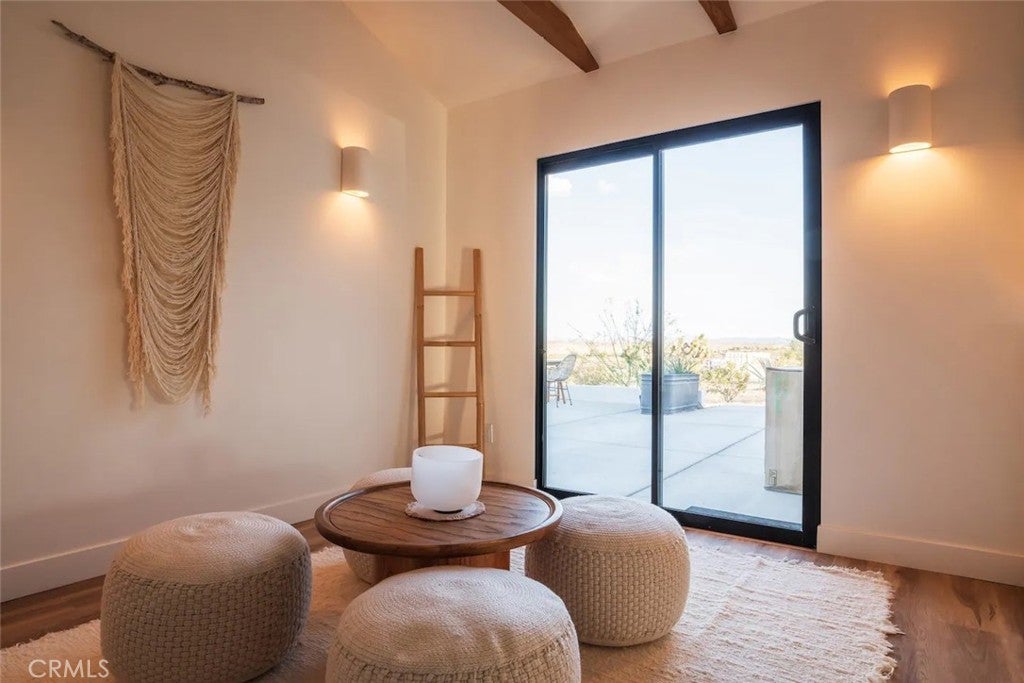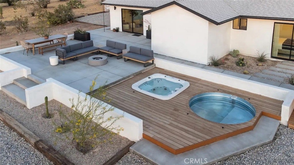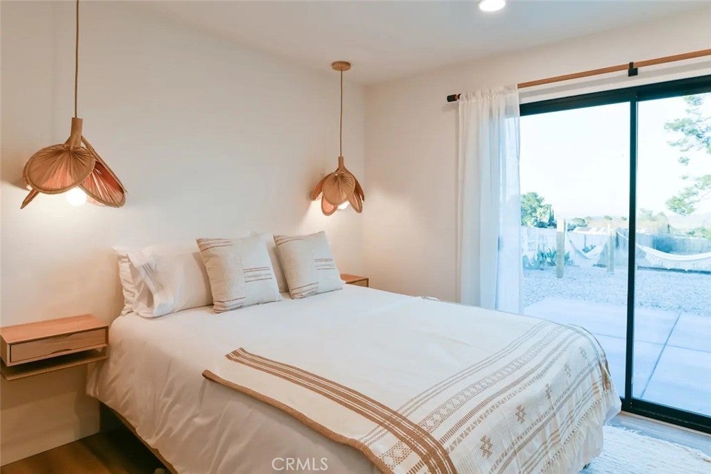 Rurally located in Flamingo Heights, this fully remodeled 4-bedroom home sits on 2.2 acres (partially fenced), offering privacy, open skies, and room to expand. Sold fully furnished. Completely updated, remodeled, and reimagined, the home combines modern design with microcement finishes, warm wood accents, and beautiful wood floors throughout. Abundant natural light fills the interiors, and each bedroom features its own windows and sliding doors, creating seamless indoor-outdoor flow with direct access to the surrounding desert landscape. The rare four-bedroom layout is thoughtfully designed for comfort, flexibility, and effortless desert living. Exceptional amenities elevate the experience, including a dedicated sound bath room, outdoor shower, cowboy pool, and hot tub, all surrounded by mature Joshua Trees and native desert cacti. Currently operating as an active short-term rental, this property is turnkey and ready for its next chapter, whether as a continued investment opportunity, private retreat, or full-time residence (buyer to verify local STR regulations). Walking distance to Pipes Canyon Wash with miles of protected hiking trails. Minutes to Sand to Snow National Monument, Giant Rock Meeting Room, and The Integratron. Centrally located near Joshua Tree National Park, Pioneertown, and Yucca Valley. Enjoy stunning Lava Butte views, expansive desert vistas, and exceptional stargazing in this prime Yucca Mesa location. The 2.2-acre lot offers strong expansion potential, ideal for adding an in-ground pool, pickleball court, guest house, or additional outdoor amenities (buyer to verify). Turnkey, fully furnished, and positioned for privacy, recreation, or future growth in the High Desert.