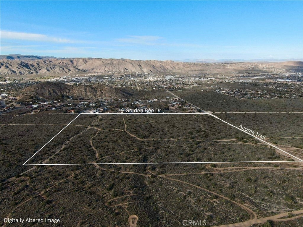 Expansive 40-acre fully fenced parcel in the highly desirable Highlands area of Yucca Valley, ideally situated just off paved Golden Bee Dr. Opportunities of this scale in such a prime location are increasingly rare, offering the perfect balance of peaceful desert seclusion and convenient access to town amenities, dining, and shopping. Set on a gentle rise, the property captures sweeping south-facing mountain views and elevated panoramic vistas overlooking Yucca Valley to the north, creating an impressive natural backdrop for a future estate compound, private retreat, or thoughtfully planned development. One of the most unique attributes of this property is its R-L-2.5 (Rural Living – 2.5 acre minimum) zoning, an uncommon designation for a parcel of this size that significantly expands its potential. With 40 acres under this zoning classification, the property offers subdivision and development possibilities rarely found in the Highlands area, making it especially attractive for builders, investors, or land bankers seeking long-term value. Adding further appeal, the entire 40 acres is already enclosed with chain-link fencing, a substantial improvement that provides security, clear boundaries, and immediate usability—an uncommon and valuable feature for a parcel of this scale. Significant due diligence has already been completed to support future planning and development, including a Joshua Tree survey completed by ArborPro, a topography survey, and a formal land survey, helping streamline the path forward for a buyer looking to explore development opportunities. Whether you're a developer seeking your next project, an investor looking for a rare large-acreage holding, or a buyer wanting to secure a premier piece of desert landscape, this property delivers exceptional scale, location, and future potential in one of Yucca Valley’s most desirable areas. Lot lines shown in photos are approximate. Buyer to verify access to utilities, zoning regulations, and all development possibilities.