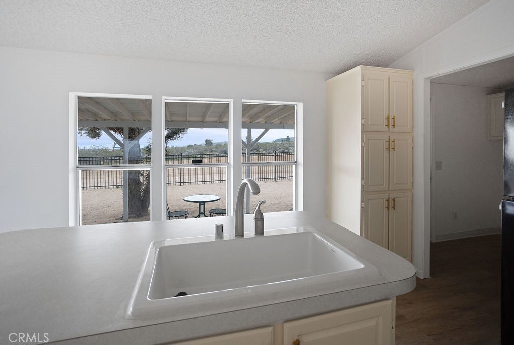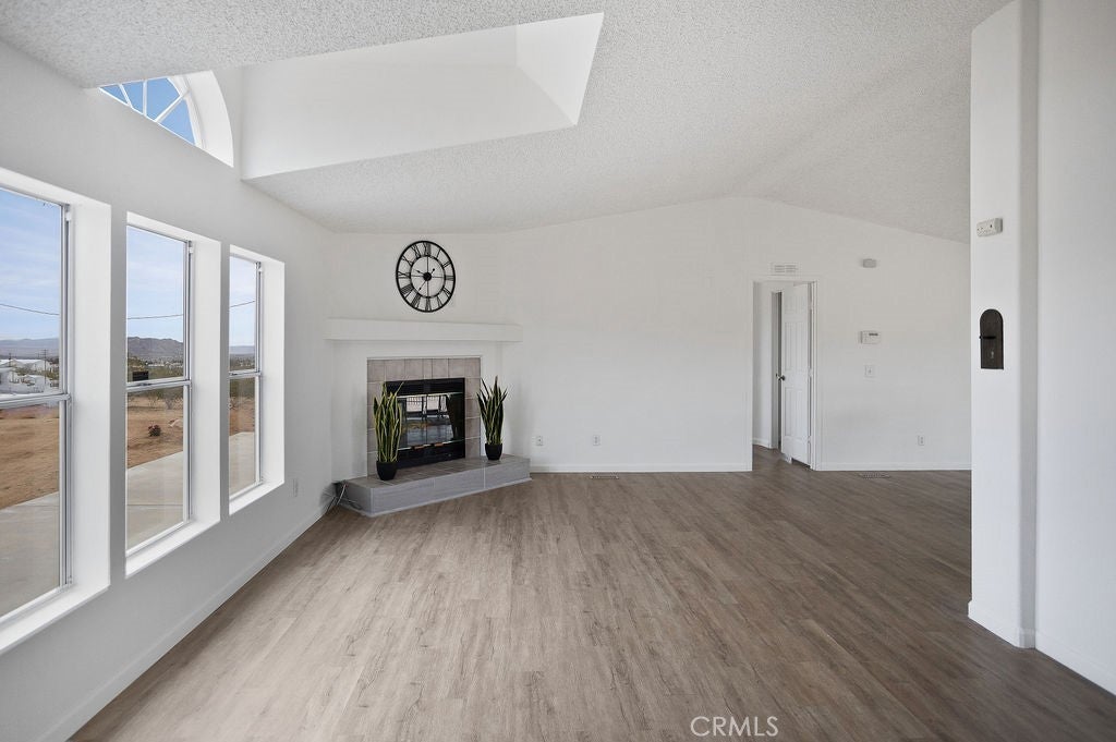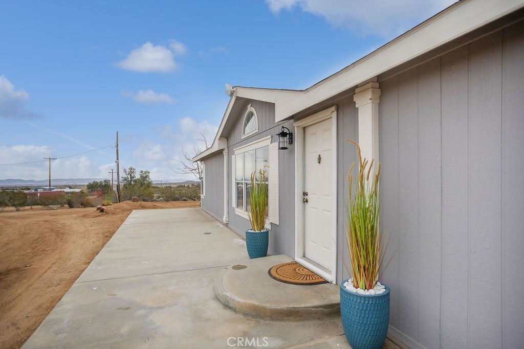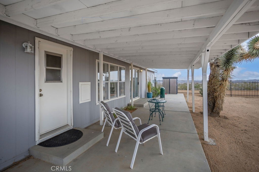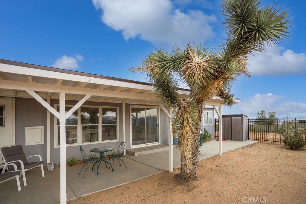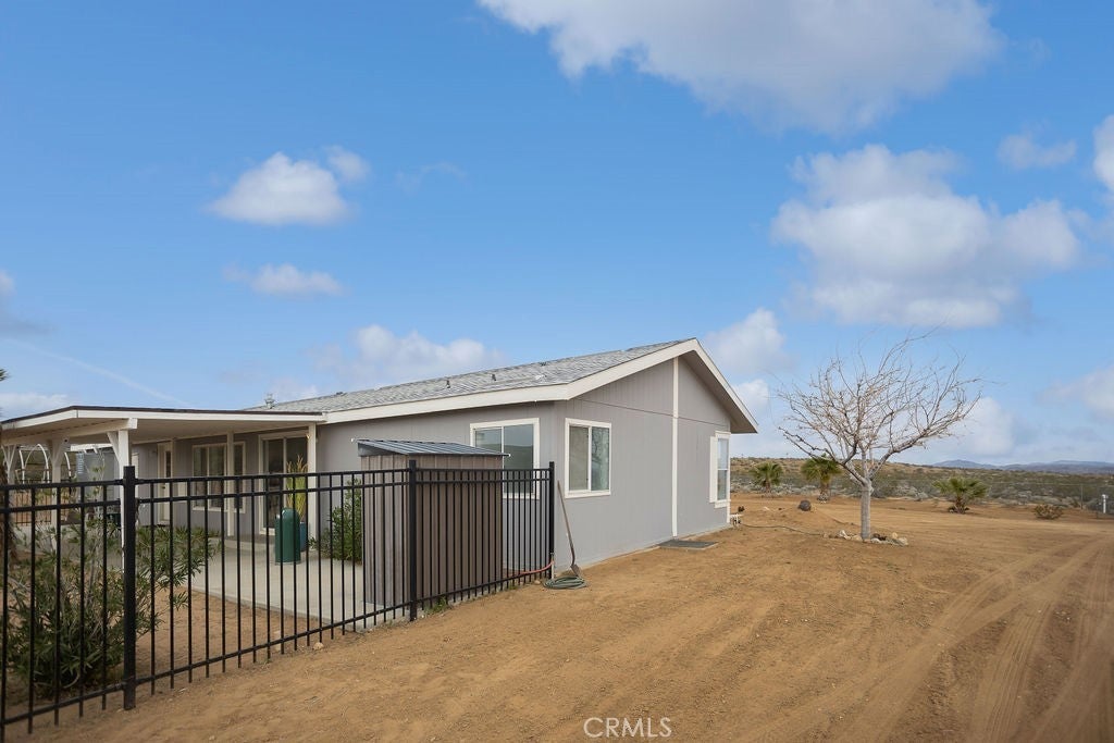 Manufactured home on permanent foundation situated on approximately 5 acres in Yucca Valley’s West Flamingo Heights area. Built in 2000, this 3-bedroom, 2-bath home offers 1,573 square feet with a desirable split floor plan and high cathedral ceilings throughout. The living room features a wood-burning fireplace and ceiling fan, with an open layout connecting to the dining area and kitchen. Kitchen includes a propane range, refrigerator, pantry, kitchen island, and ample cabinetry. The primary suite offers a walk-in closet and en-suite bath with dual sinks, soaking tub, and separate walk-in shower. Additional bedrooms are positioned for privacy. Laundry room includes washer hookup and gas dryer hookup. Central heating and air conditioning provide year-round comfort. The home is serviced by an owned propane tank. Exterior features include concrete surrounding the home, covered patio area, and full chain-link fencing around the 5-acre parcel. Enjoy expansive desert, mountain, and panoramic views. Property is located in an unincorporated area of San Bernardino County. Buyer to verify all utilities, land use, zoning, permits, square footage, and features to their satisfaction.