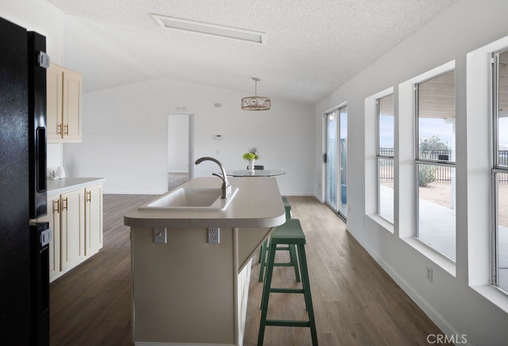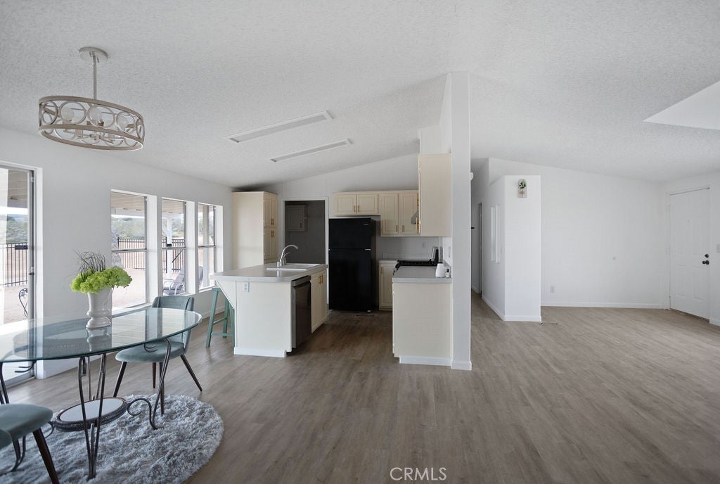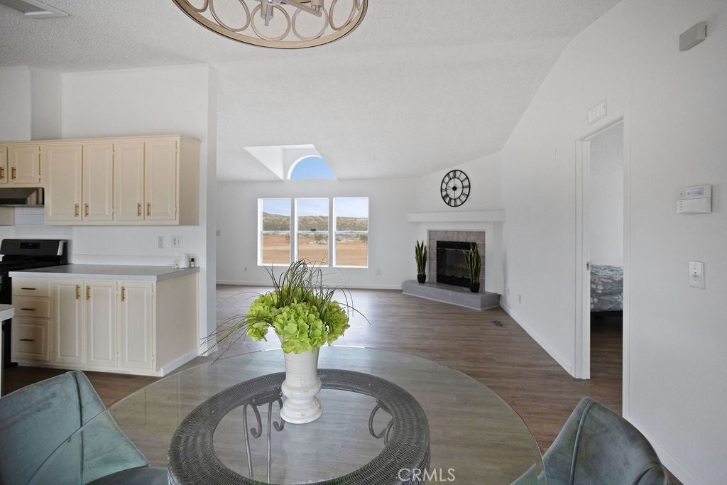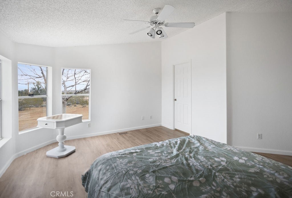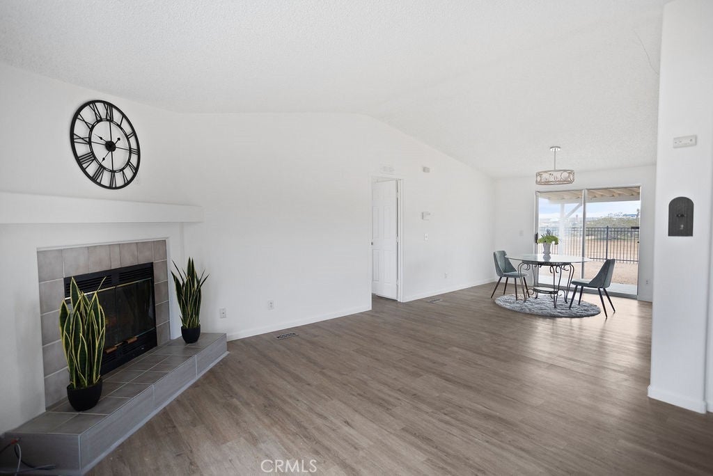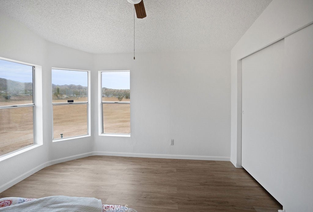 Manufactured home on permanent foundation situated on approximately 5 acres in Yucca Valley’s West Flamingo Heights area. Built in 2000, this 3-bedroom, 2-bath home offers 1,573 square feet with a desirable split floor plan and high cathedral ceilings throughout. The living room features a wood-burning fireplace and ceiling fan, with an open layout connecting to the dining area and kitchen. Kitchen includes a propane range, refrigerator, pantry, kitchen island, and ample cabinetry. The primary suite offers a walk-in closet and en-suite bath with dual sinks, soaking tub, and separate walk-in shower. Additional bedrooms are positioned for privacy. Laundry room includes washer hookup and gas dryer hookup. Central heating and air conditioning provide year-round comfort. The home is serviced by an owned propane tank. Exterior features include concrete surrounding the home, covered patio area, and full chain-link fencing around the 5-acre parcel. Enjoy expansive desert, mountain, and panoramic views. Property is located in an unincorporated area of San Bernardino County. Buyer to verify all utilities, land use, zoning, permits, square footage, and features to their satisfaction.
