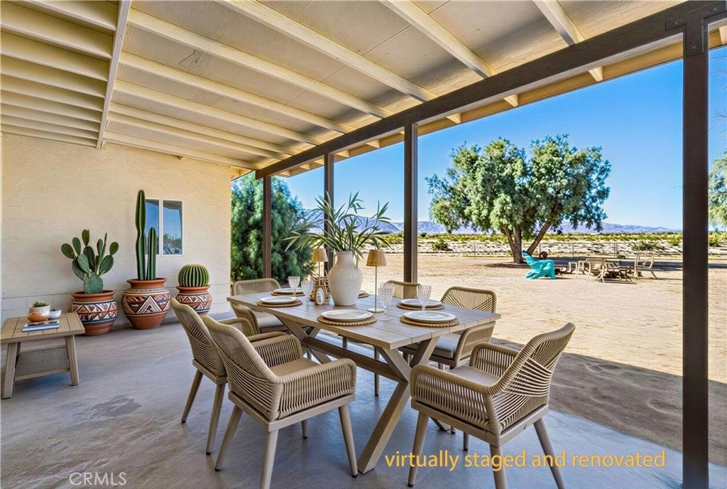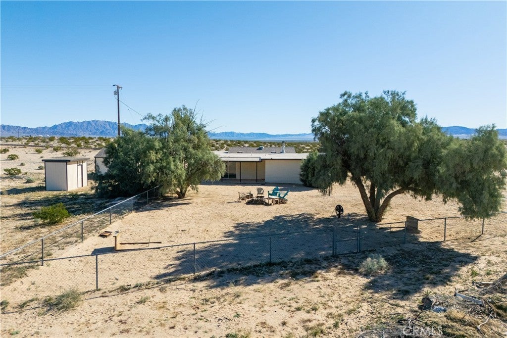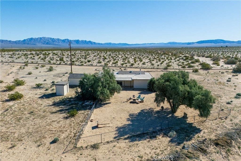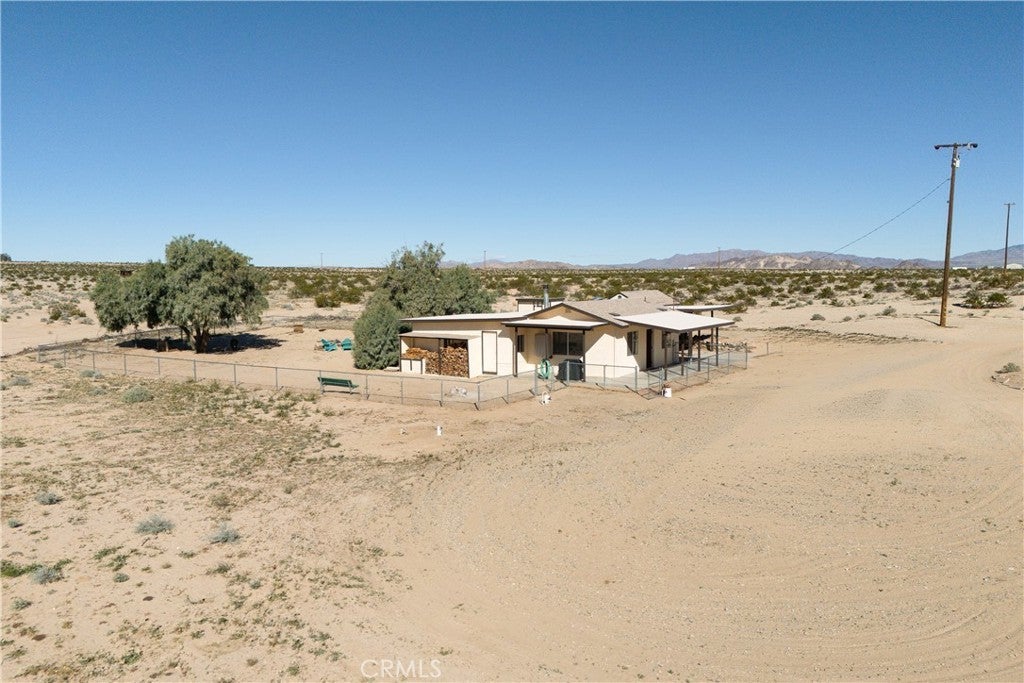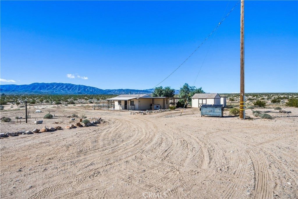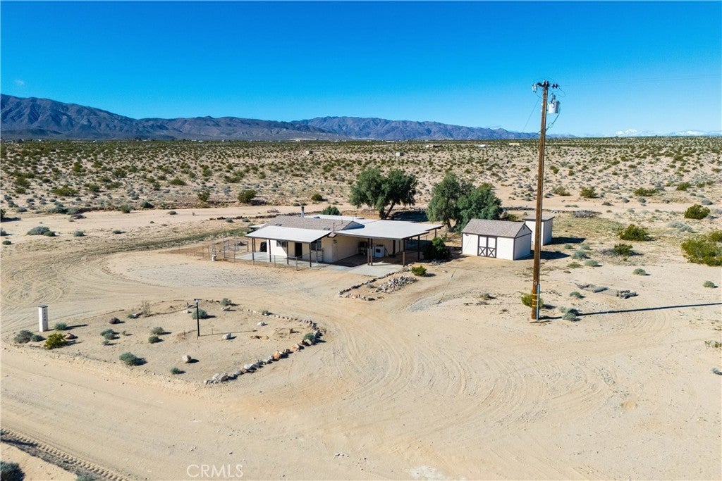 Escape to wide-open space and breathtaking desert beauty with this charming 2-bedroom, 1-bath home offering 1,076 square feet of comfortable living space on 5 expansive acres. Surrounded by endless 360-degree views, this property captures the true essence of high desert living. Located less than 15 miles from the rapidly growing Twentynine Palms area and the world-renowned Joshua Tree National Park, you’ll enjoy peaceful seclusion without sacrificing convenience. Whether you're looking for a full-time residence, weekend getaway, or investment opportunity, this property offers incredible potential. Recent improvements add both value and peace of mind, including a newer roof, private well for water, and a new pump house. A powered shed provides additional space for storage, hobbies, or a workshop setup—perfect for embracing the desert lifestyle. Wake up to stunning sunrises and unwind each evening with vibrant desert sunsets stretching across your own private horizon. With five acres of usable land, there’s ample room for expansion, outdoor living spaces, gardens, animals, or simply enjoying the quiet beauty that surrounds you. If you’ve been dreaming of space, views, and proximity to one of Southern California’s most iconic natural destinations, this desert retreat is ready to welcome you home.