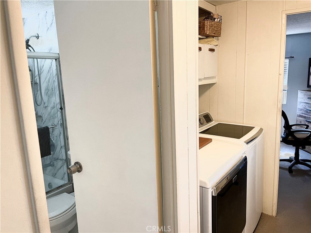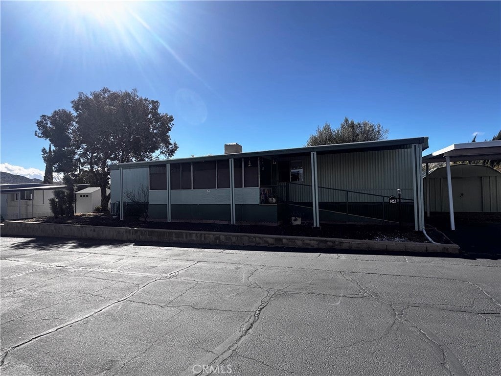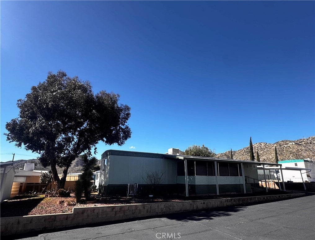 A beautifully maintained mobile home located in the desirable 55+ Fairway Mobile Estates Park in Yucca Valley, just a short 40-minute drive from Palm Springs. This inviting residence features a spacious open-plan layout with a large, screened in front porch perfect for enjoying the desert evenings. The home boasts durable linoleum flooring in the kitchen, newer appliances—including a gas range, washer, and dryer—and sleek wood-slat blinds throughout the home. The bathroom showcases elegant marble flooring and a matching tub surround, adding a touch of luxury. Comfort is ensured year-round with central heating and an efficient swamp-cooler for summer cooling. Residents enjoy community amenities such as a seasonal pool open during the summer months and an on-site laundromat. Conveniently within walking distance to Old Town Yucca Valley’s shops and restaurants as well as Hawk's Landing Golf Course, this pet-friendly home offers easy access to local dining, retail, and entertainment while providing a tranquil setting for comfortable living.